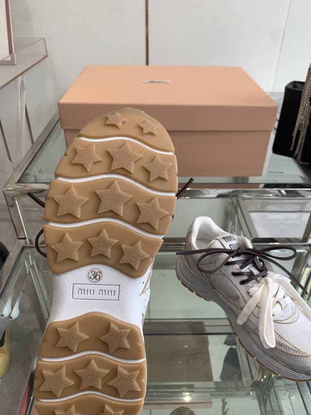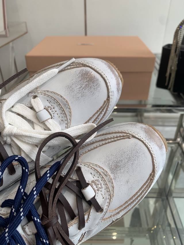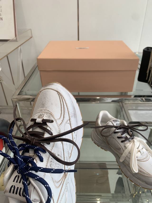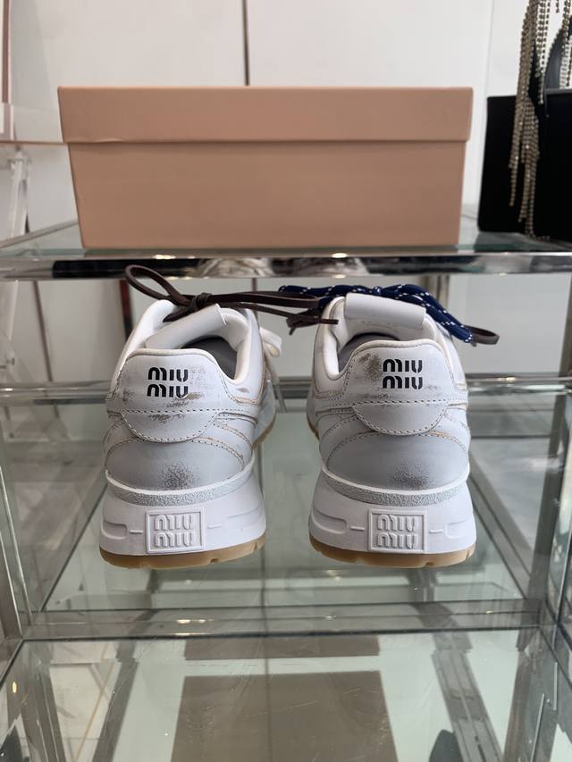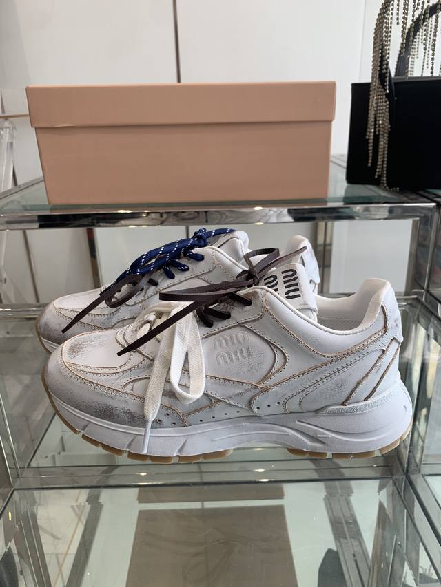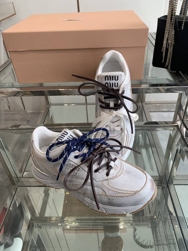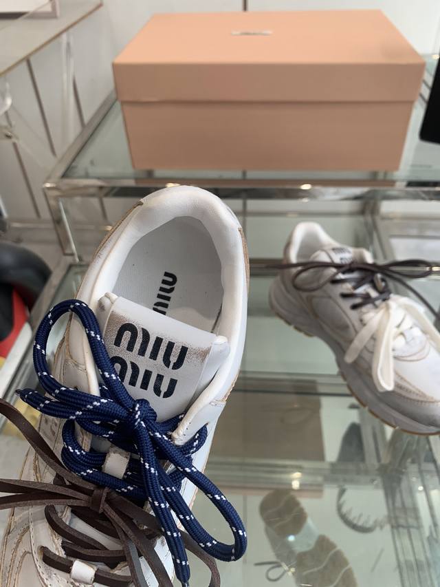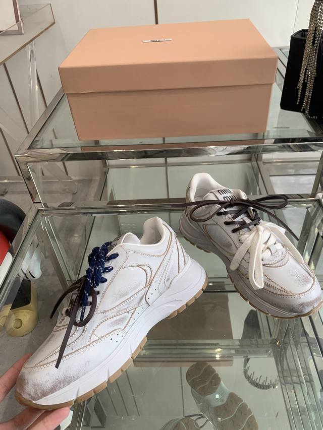 Miu Miu 缪缪 25Ss春夏新款 复古 擦色 老爹鞋 颜值担当火爆款运动鞋 不得不入的一款~做旧时尚 简约高级 随意搭配上脚非常舒适,年度必入款 最新走秀款运动老爹鞋国内外博主刷爆的一款 小红书种草系列,复古又时髦上脚美炸了简约的运动板鞋设计 极具辨识度的鞋舌,打造佛系甜美的休闲风~~上脚气场十足随意搭配 主流双鞋带设计 主打一个时尚 面料:采用原版进口牛皮擦色 透气网 内里垫脚:透气网 鞋底:原版定制橡胶大底 码数:35-40 40订做