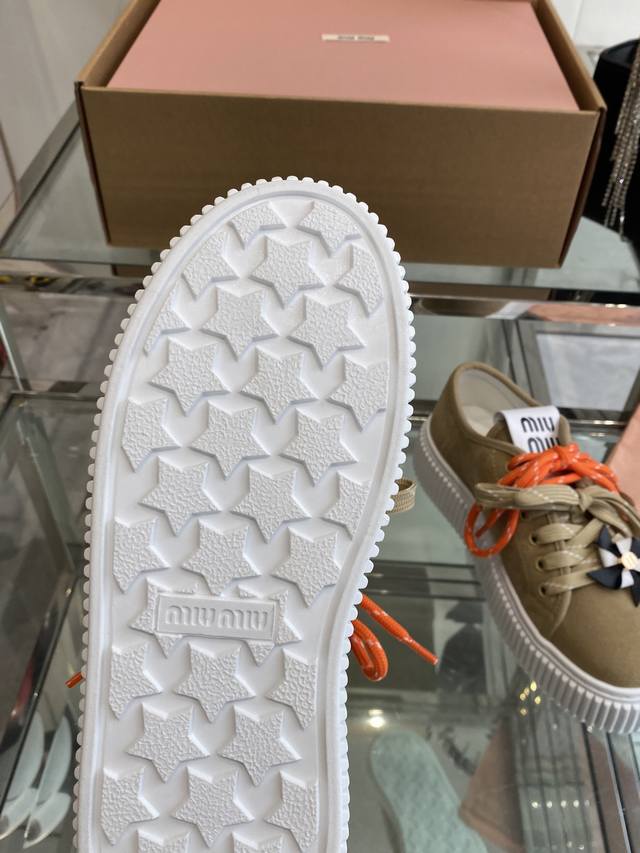 Miu Miu 缪缪 25Ss秋冬新款 厚底休闲小白鞋 顶级原版面料质感满满,搭配经典3D立体字母刺绣,刺绣Logog立体饱满,瞬间点亮整体造型,辨识度Up!I