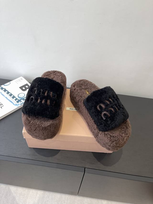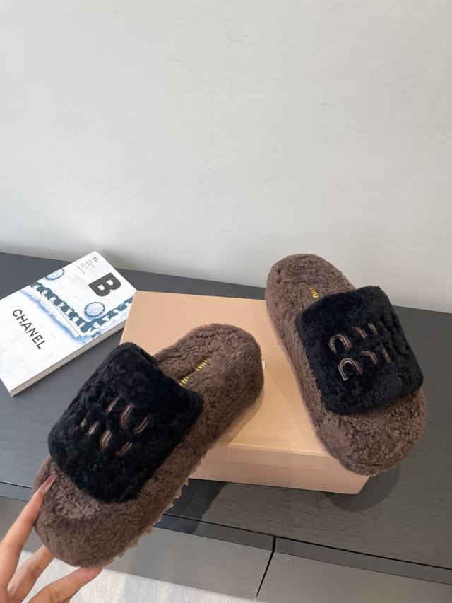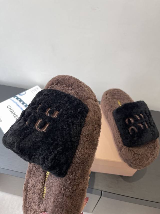Miu Miu 缪缪 25Ss秋冬新款 厚底羊毛拖 秋冬来临 毛拖是必不可少的单品 不仅足够保暖 还能拥有舒适的触感无论搭配什么都有种漫不经心的时髦纯羊毛 有用