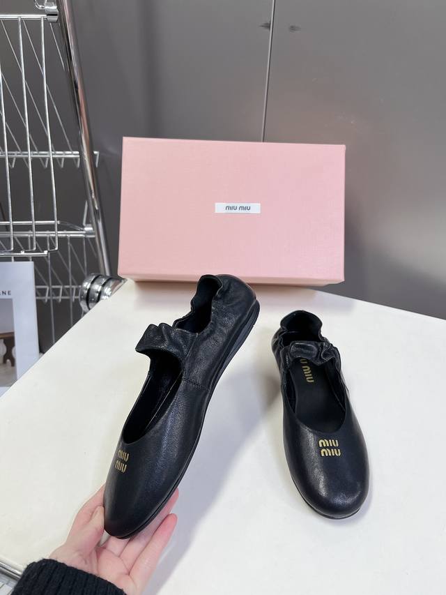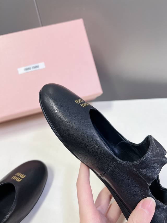 Miu Miu 缪缪 25Ss 春夏季新款 芭蕾舞鞋 缪家以芭蕾的灵动意韵融于日常. 以现代笔触刻画舞鞋经典轮廓!超软的绵羊皮质款芭蕾舞鞋. 从经典日式鞋履汲取