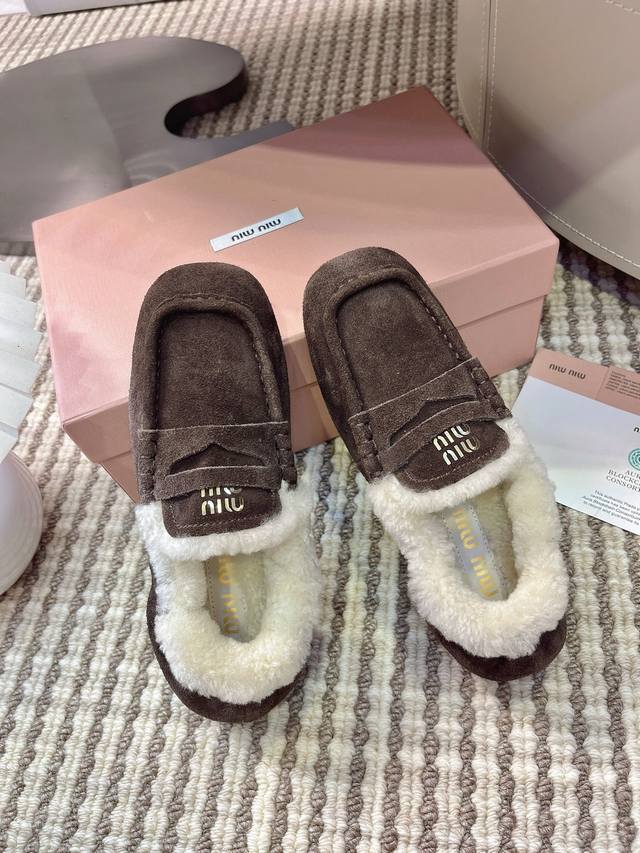 Miu Miu 2025秋冬新款 羊羔毛乐福鞋 DDD 原版1:1开发秒杀市场一切版本欧美名媛明星、网红的大爱款 DDD 欧洲进口A级羊毛 与原版一致满鞋全部采用100%纯羊毛 DDD 鞋面和垫脚Logo采用混种羊皮 DDD 原版1:1开模橡胶大底 耐磨防滑 DDD 码数:35-40 41定做不退换 DDD 栗色 沙色 胡桃木色 DDD