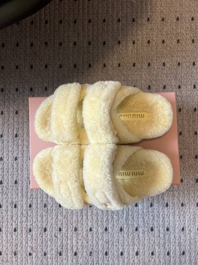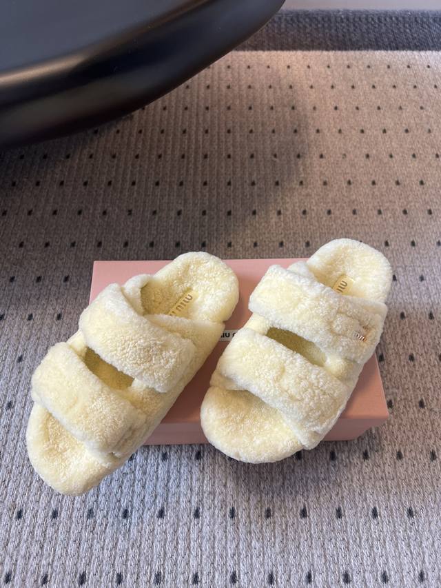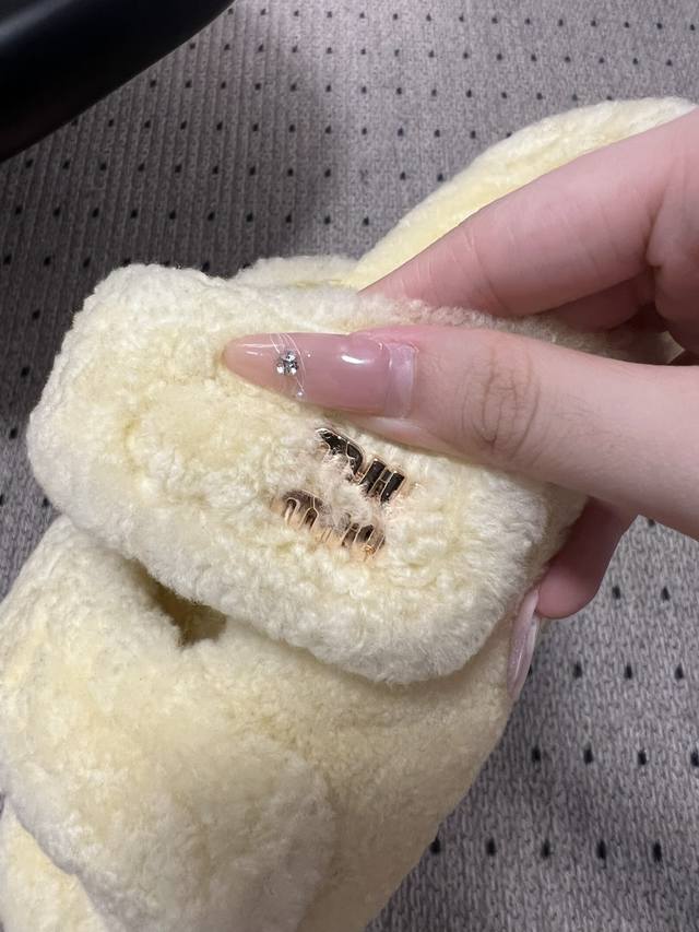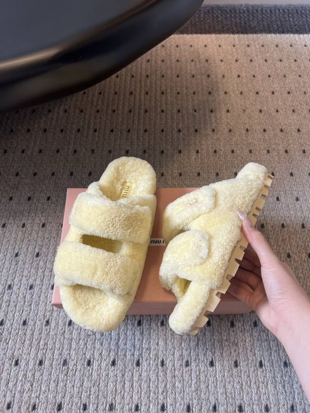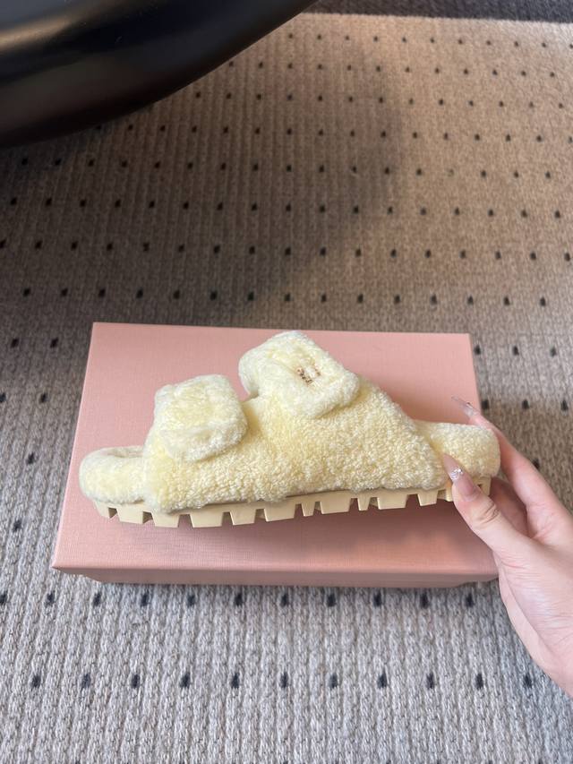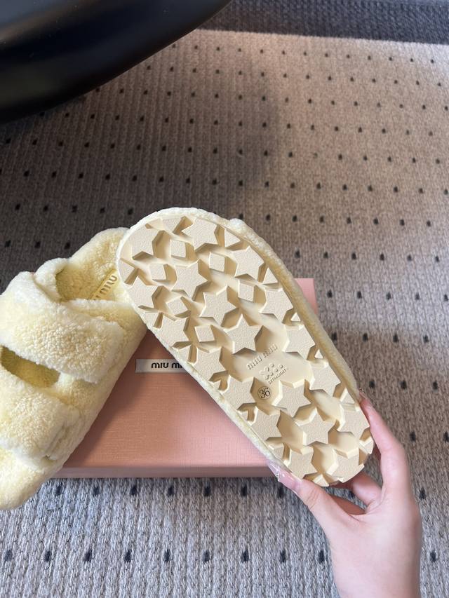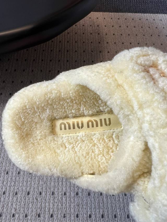 Miu Miu 25Ss 秋冬新品毛拖~ 秋冬新宠 百搭时髦单品! 不管居家还是外穿都是品味的象征性! 秋冬搭配袜子 那更是太绝太绝了官方新款,时髦百搭 即可咸又可甜一点也不磨脚 无论光脚穿还是搭配袜子穿都超级减龄 超级无敌百搭! 材料:进口澳洲真羊毛手感细腻柔软丝滑 内里:羊毛 大底:成型防滑底 Size:#35-41 40 41订做不退换 :