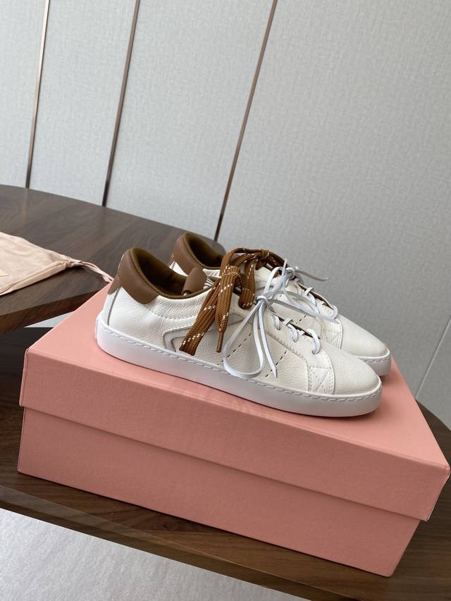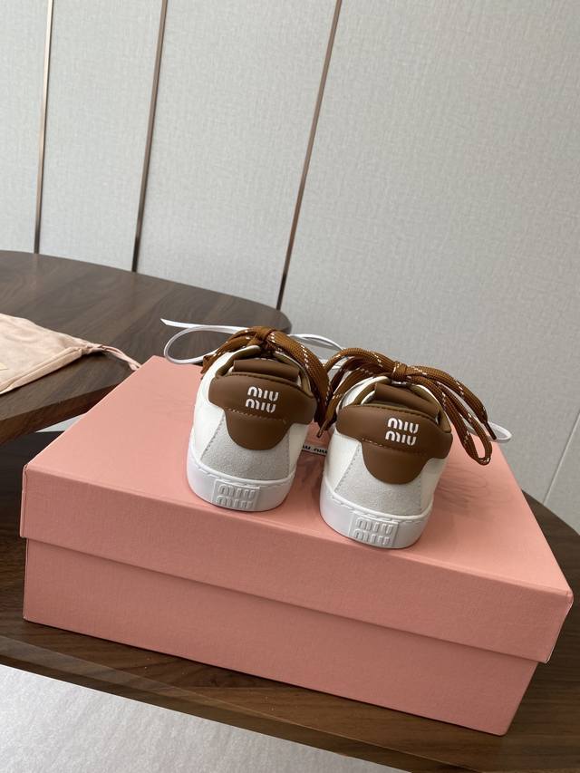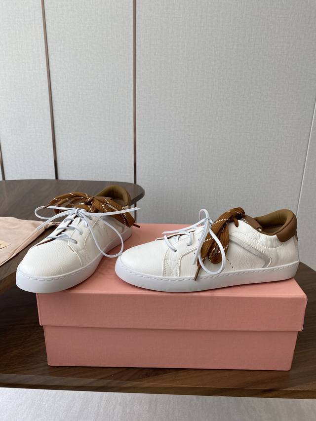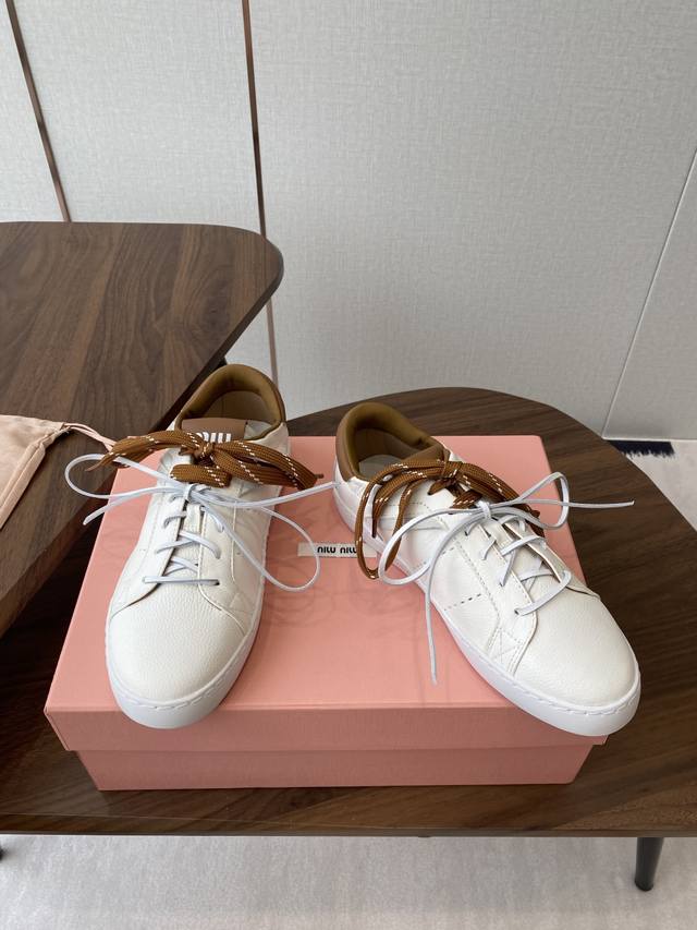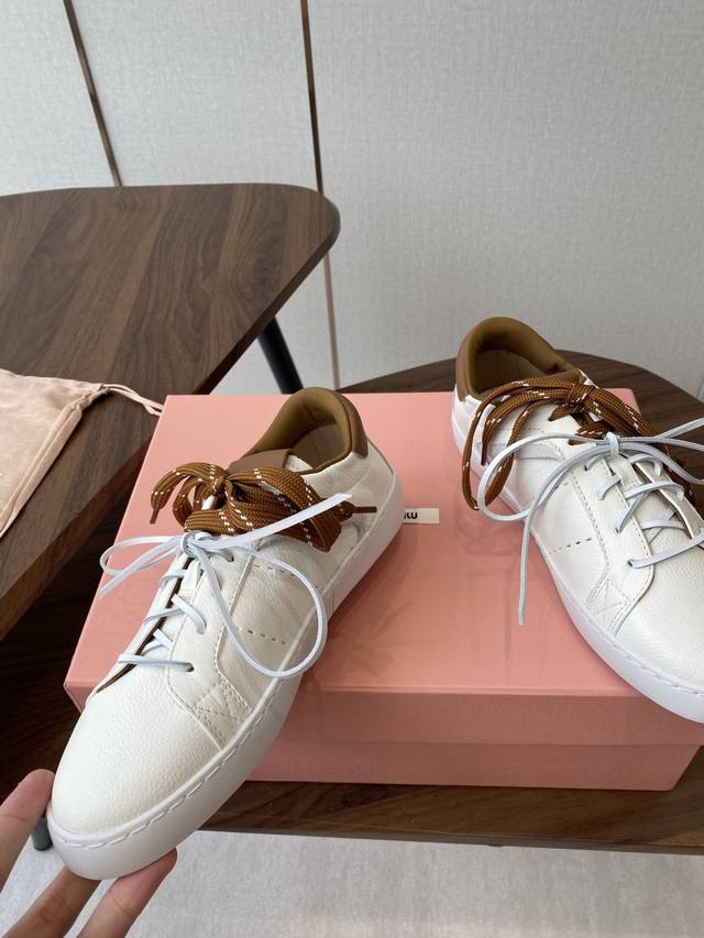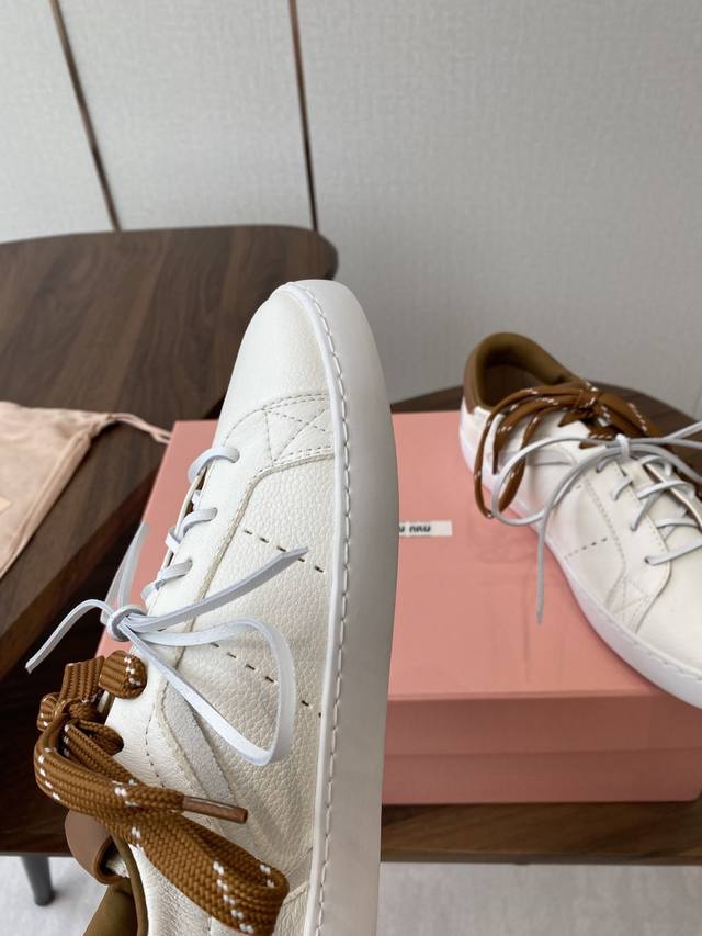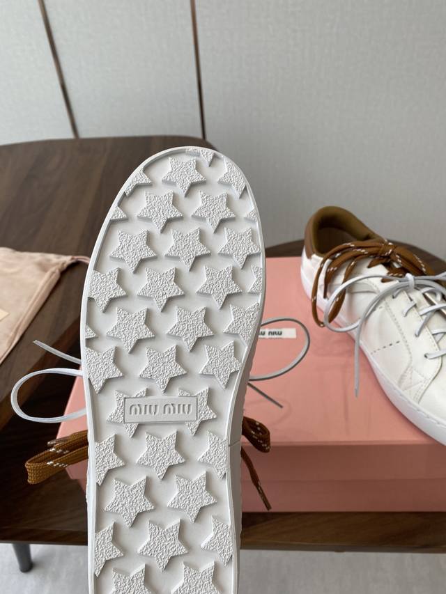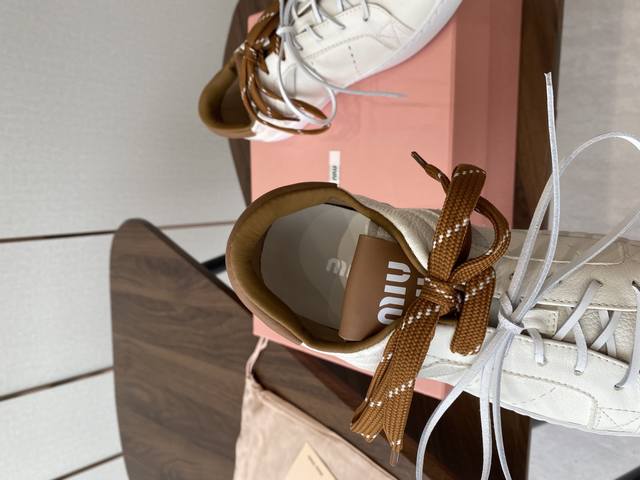 Miu Miu 25Ss 缪缪厚底饼干底 25Ss 春夏新款英伦风系带 小白鞋 休闲鞋