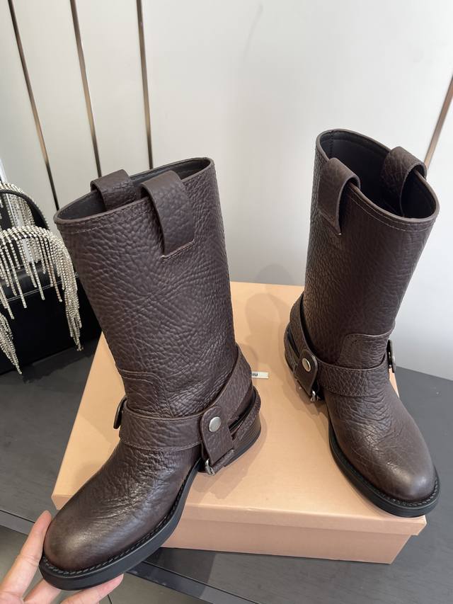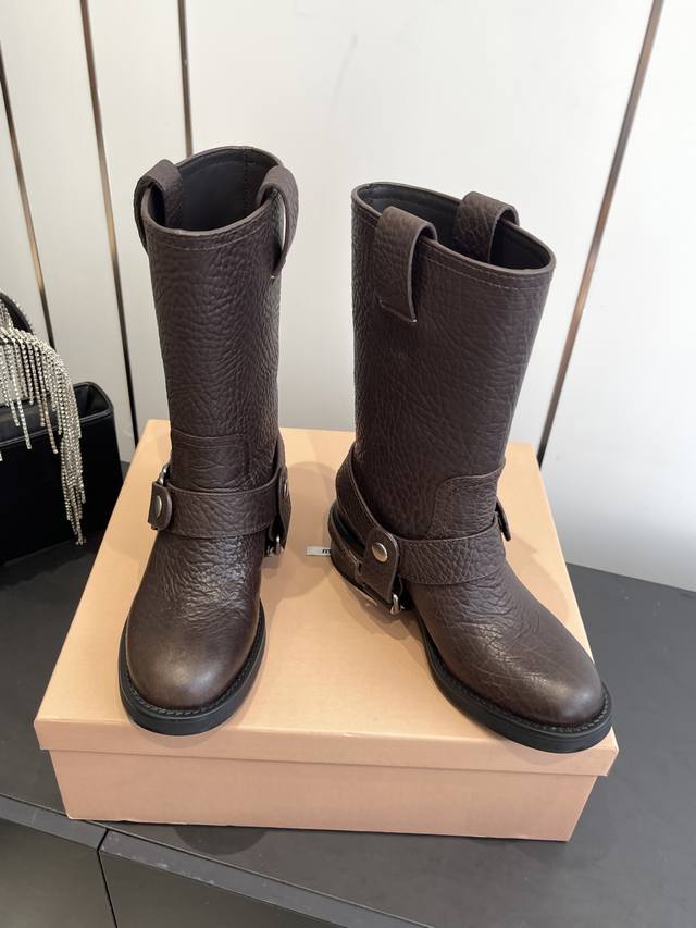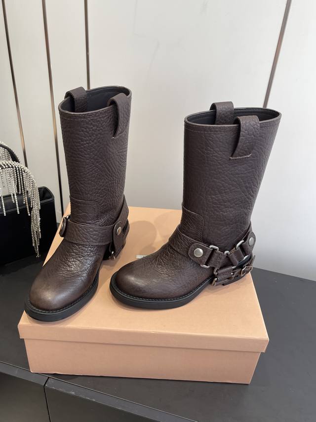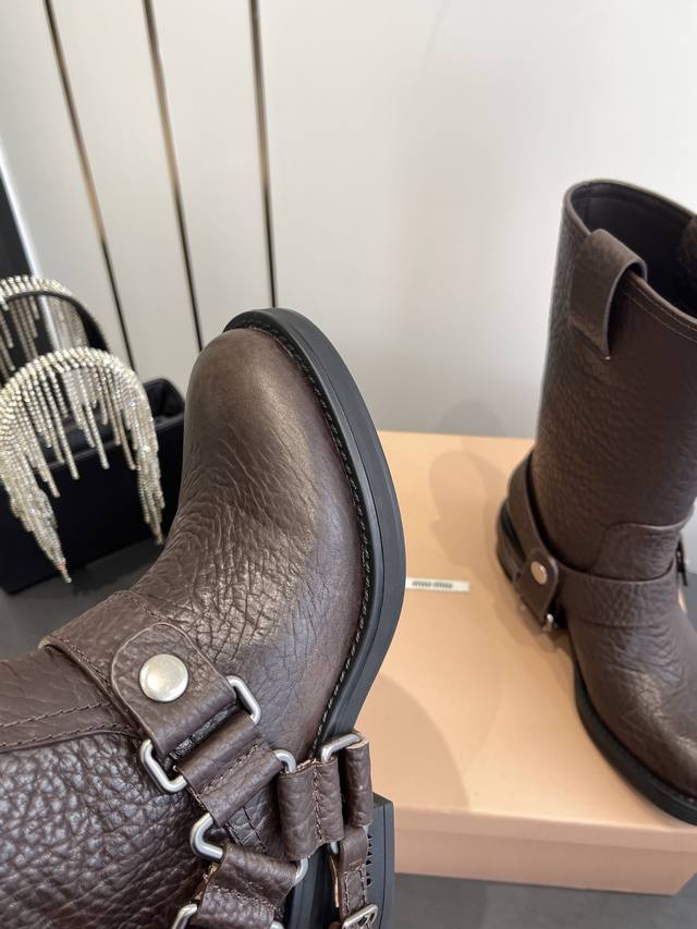 Miu Miu Fw25 New Arrival~ 缪缪 25Ss 秋冬新款厚底 短靴 骑士靴 简约鞋面点缀 高级感满满 上脚超级有型~酷酷的非常帅气好看,时尚