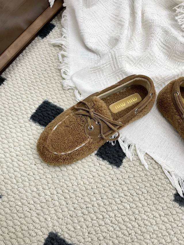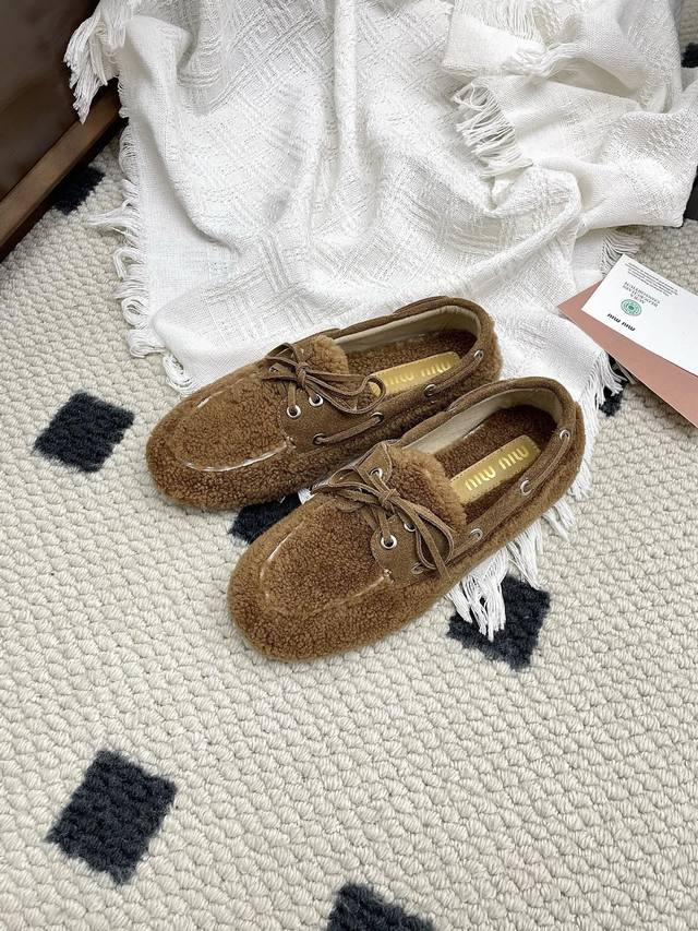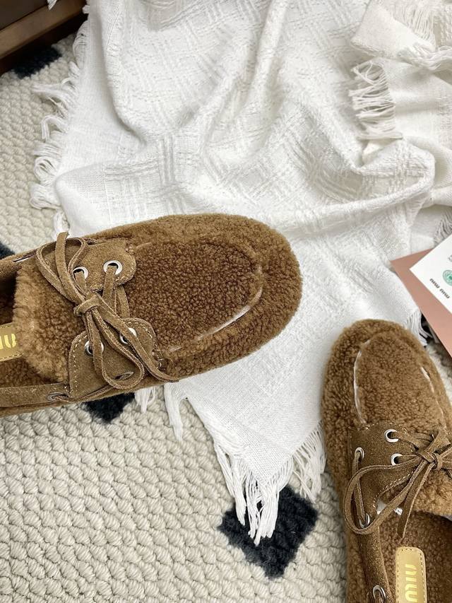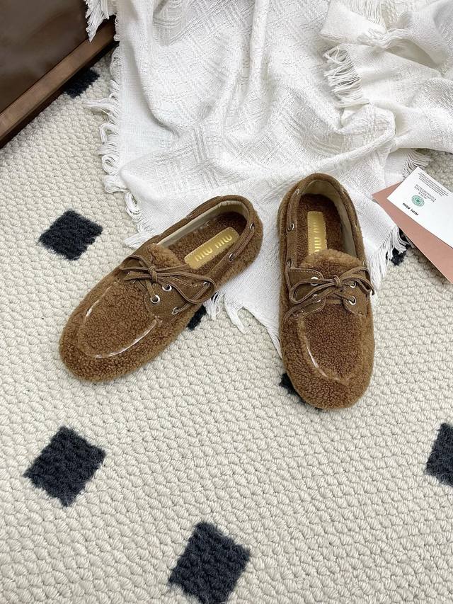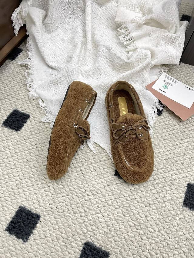 Miu Miu2025新款复古豆豆鞋 独家高版 Miu Mi*2025春款平底Zp开发 原版秒杀市面版本 Miu真的太少女啦!超级软糯 喜欢可以冲了! 鞋面:羊羔毛 大底:原版开模大底 码数:35-39 40.41定制不退不换