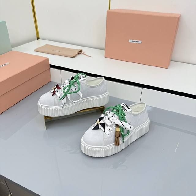 扣饰+45,下单备注 Miumiu缪缪 最新 复古 情侣款 厚底 飞织 休闲 运动鞋 原版购入开发 做货...