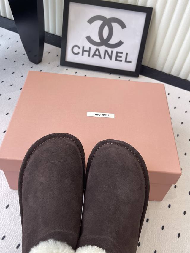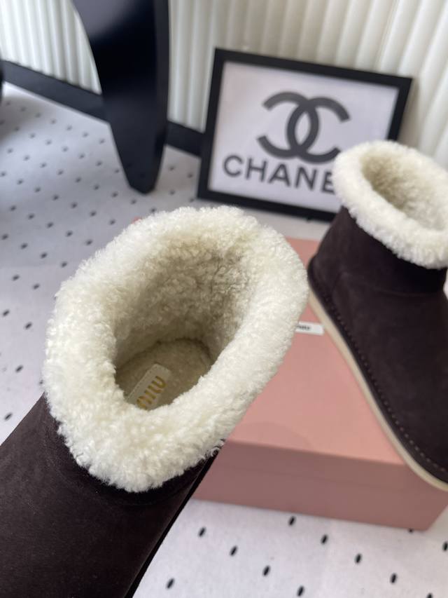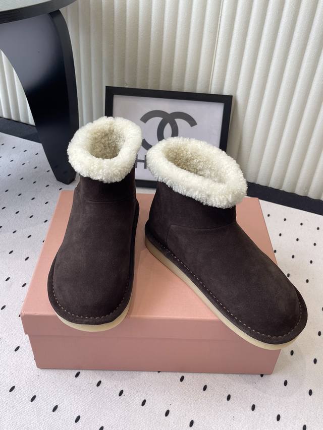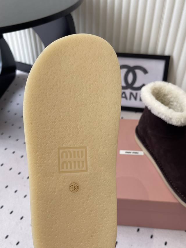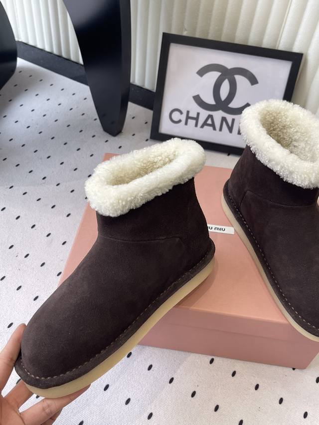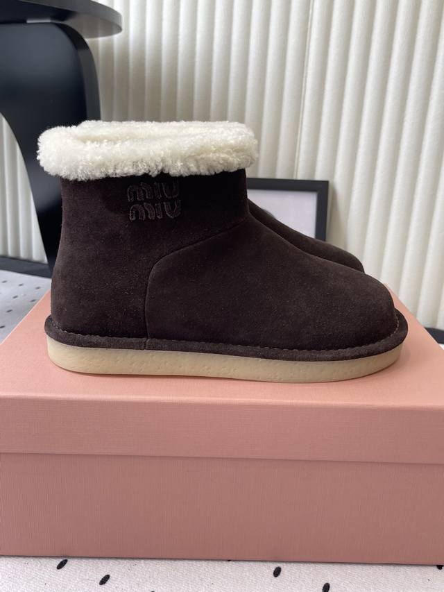 Miumiu新款秋冬雪地靴 高版本 上脚少女感十足 舒适百搭保暖 进口丝光牛反绒鞋面 羊毛内里垫脚 Size: 35-40