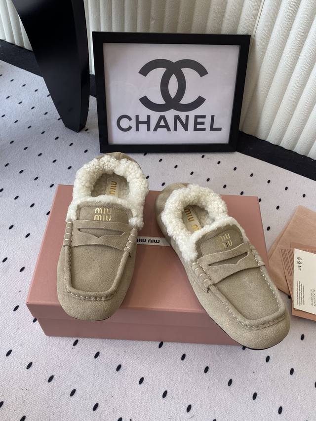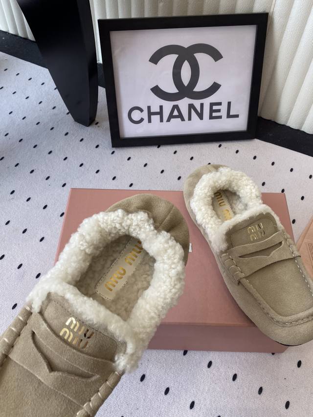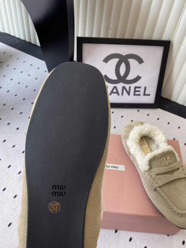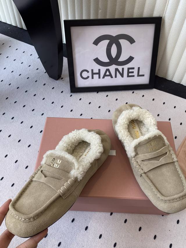 Miumiu秋冬新款羊毛乐福鞋鞋 高版本 明星网红大爱款 上脚舒适时尚暖和 进口A级羊毛鞋面 原版防滑耐磨大底 Size: 35-40