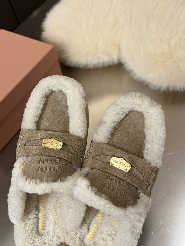 FFF Miumiu秋冬氛围感直接拉满! DDD 2025秀场同款包头拖鞋来了~ DDD 进口绒面牛皮邂逅澳洲纯羊毛内里 DDD 每一步都像踩在云端般柔软 DDD 复古金币与压花徽标点缀鞋面 DDD 细节处处透着高级与经典 DDD 无论是搭配大衣还是休闲装束 DDD 轻松穿出不费力的时髦感 DDD 耐磨橡胶底,好穿不娇气 DDD 秋冬出街的慵懒与优雅 DDD 这一双全给你 DDD #Miumiu #秋冬新款 #乐福鞋 #慵懒高级感 DDD 1面料:原版牛反绒 DDD 2内里:羊卷毛 DDD 3大底:原版开
