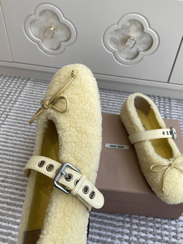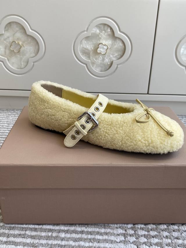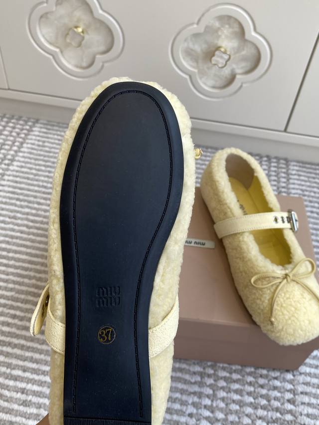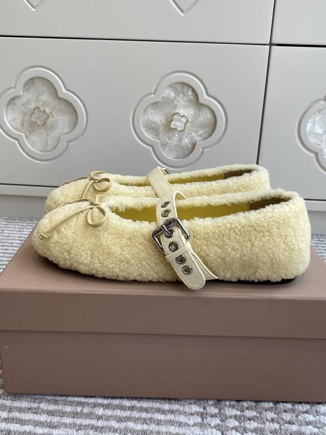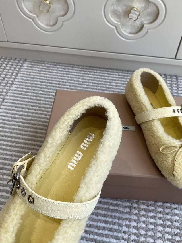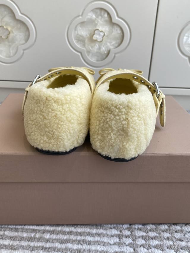 / Miumiu缪缪新款蝴蝶结泰迪羊毛玛丽珍单鞋 材质与工艺: 进口羊卷毛 羊皮内里 原版开模橡胶大底 Size:35-39 40 41定做不退换