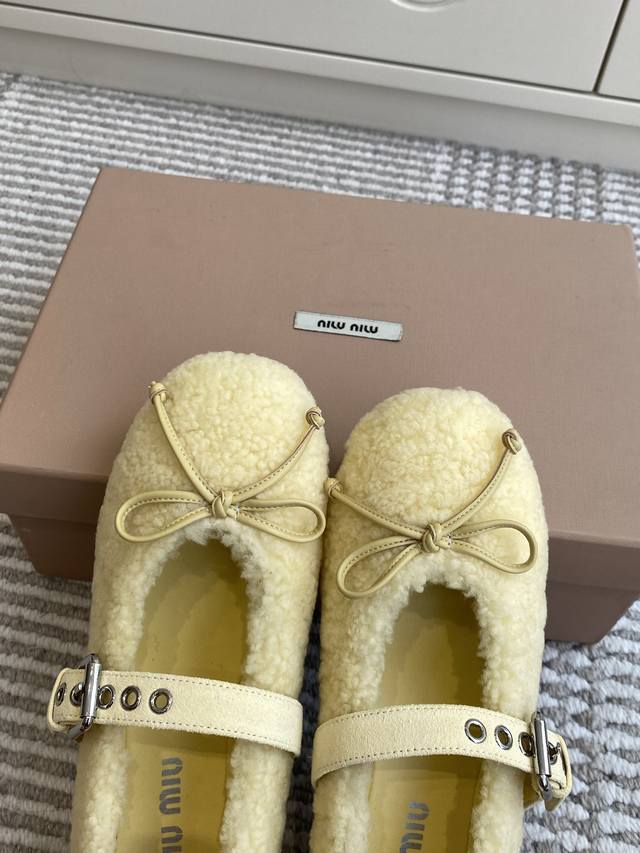 Miumiu缪缪新款蝴蝶结泰迪羊毛玛丽珍单鞋 材质与工艺: 进口羊卷毛 羊皮内里 原版开模橡胶大底 Size:35-39 40 41定做不退换