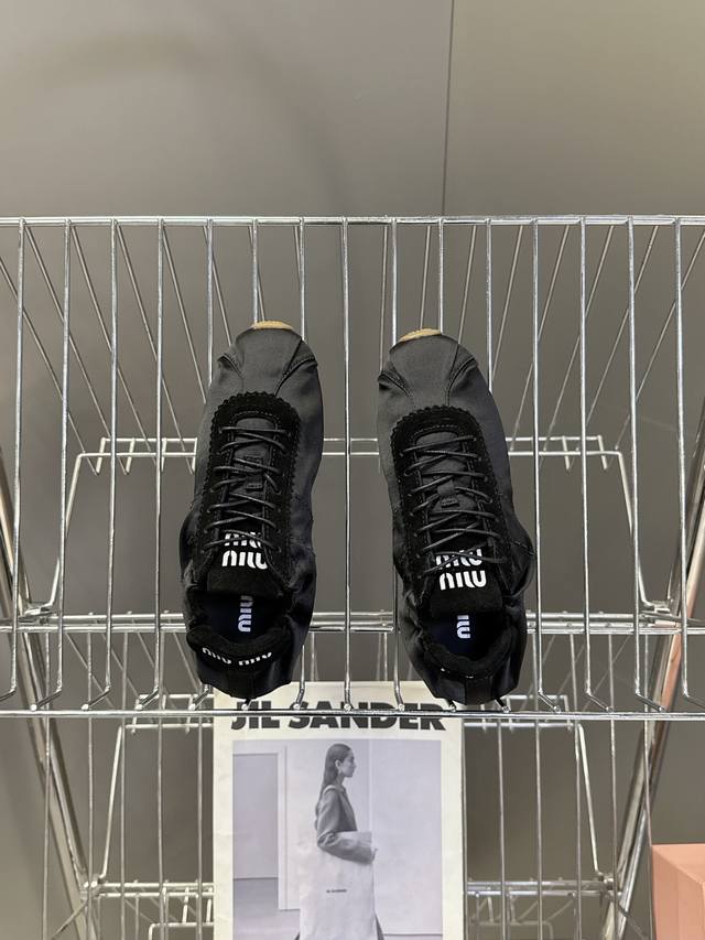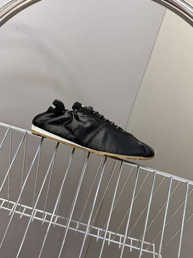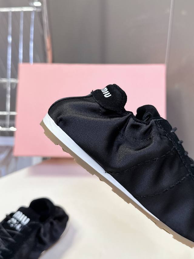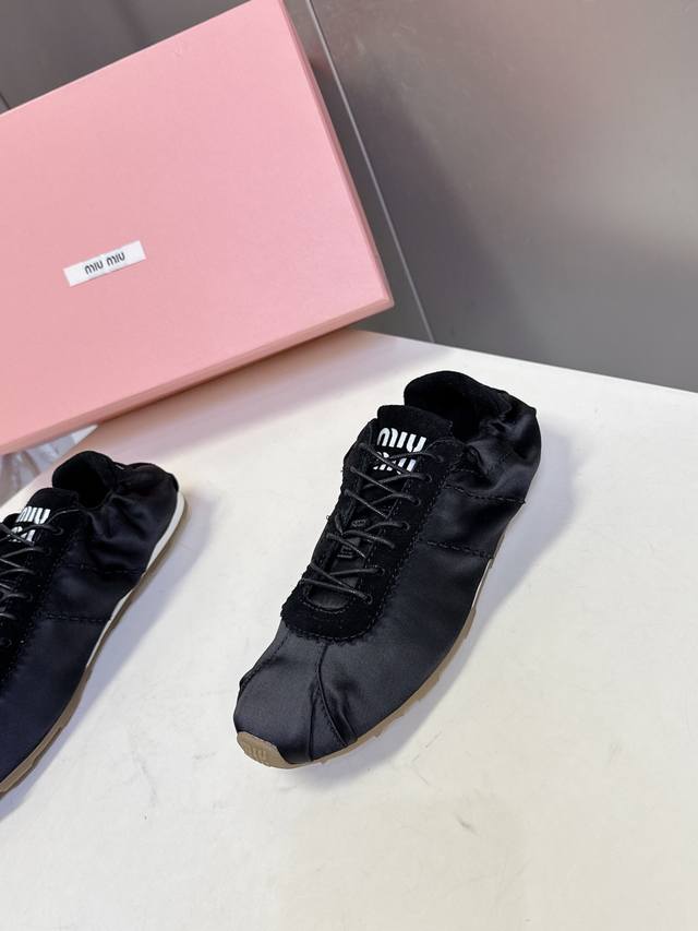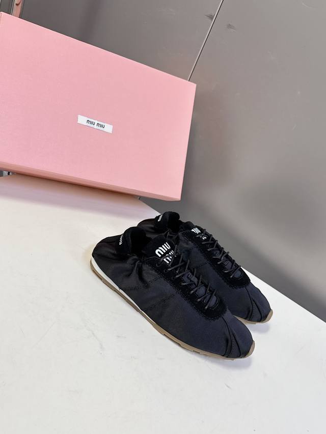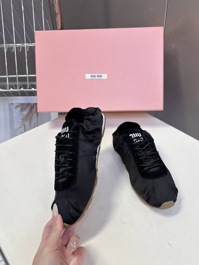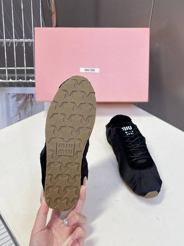 Miumiu缪缪春夏最新走秀款薄底鞋 休闲鞋 超多明星网红种草 国内外博主刷爆的一款 小红书种草系列 复古又时髦上脚美炸了 简约的运动板鞋设计,极具辨识度的鞋舌,打造佛系甜美的休闲风~~上脚气场十足随意搭配,长裙,短裙,短裤,穿出与众不同的风格~~ 鞋面进口丝绸 内里混种羊皮 ,原版开模防滑大底 码数:35-40 DDD