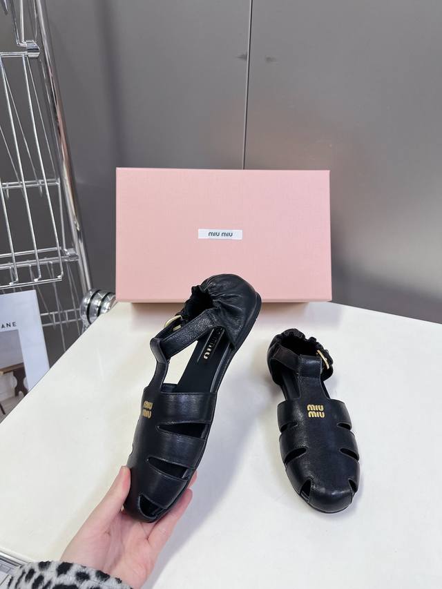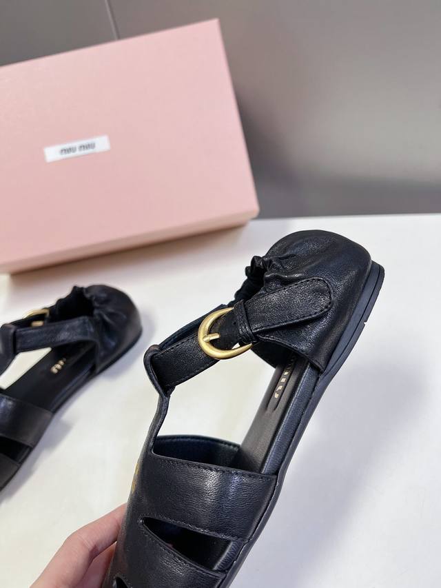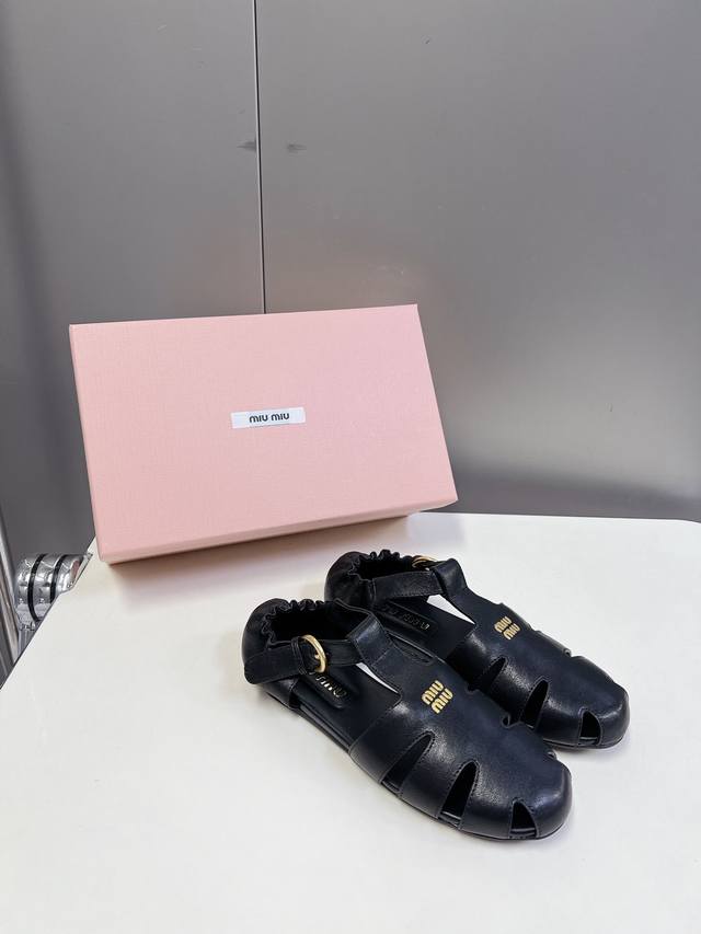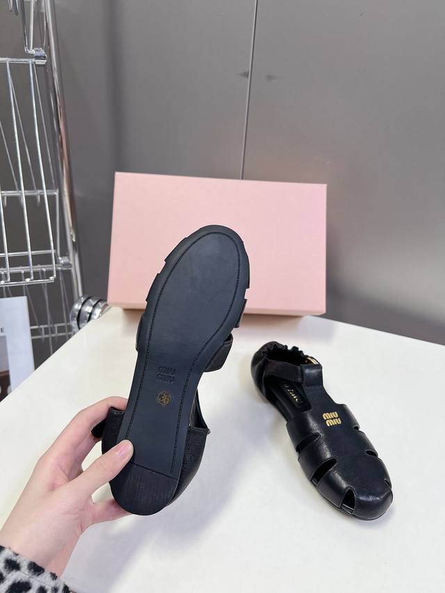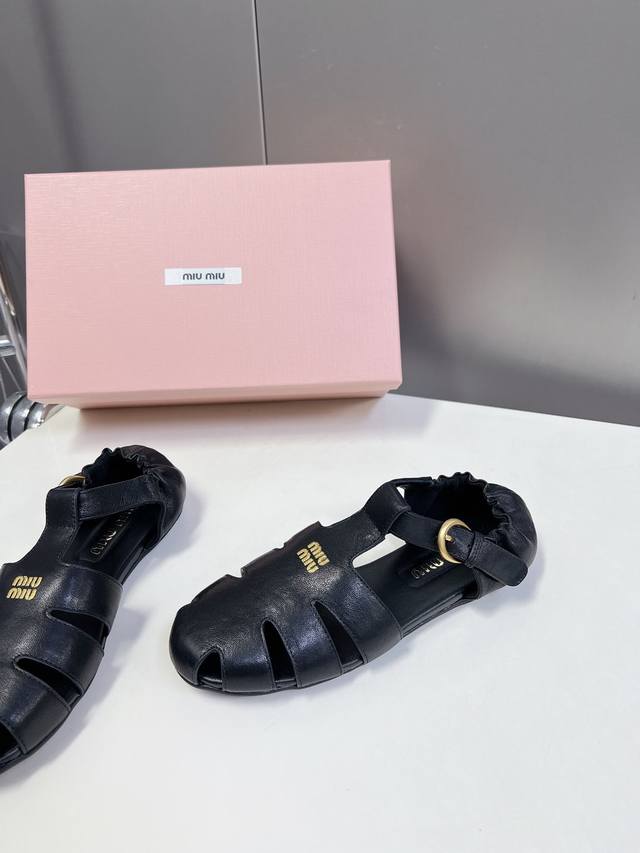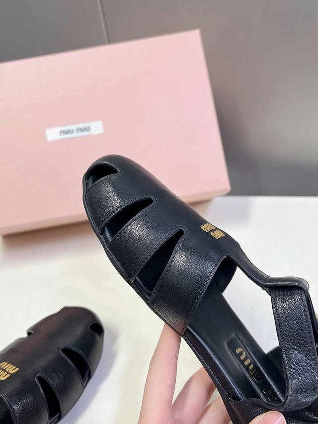 Miumiu缪缪春夏走秀款罗马凉鞋猪笼鞋 超多明星网红种草 复古时髦前 品牌Logo标志性金属标搭配每一个设计元素都踩在时髦点上 上脚非常好看舒适 超多网红种草