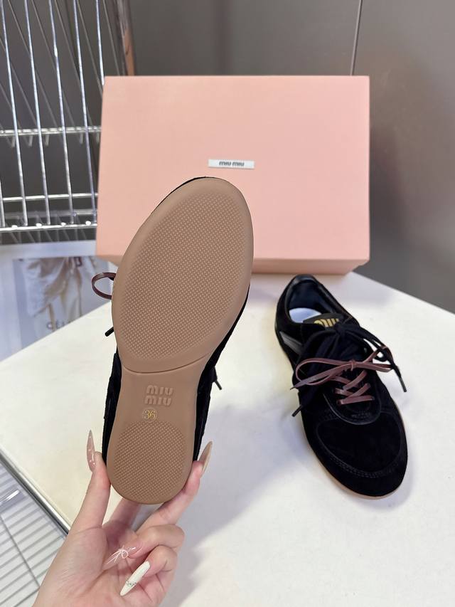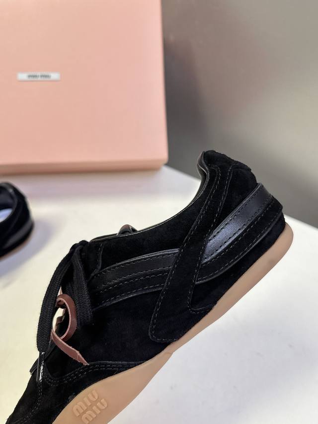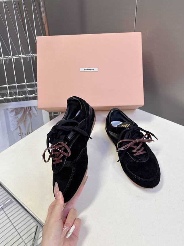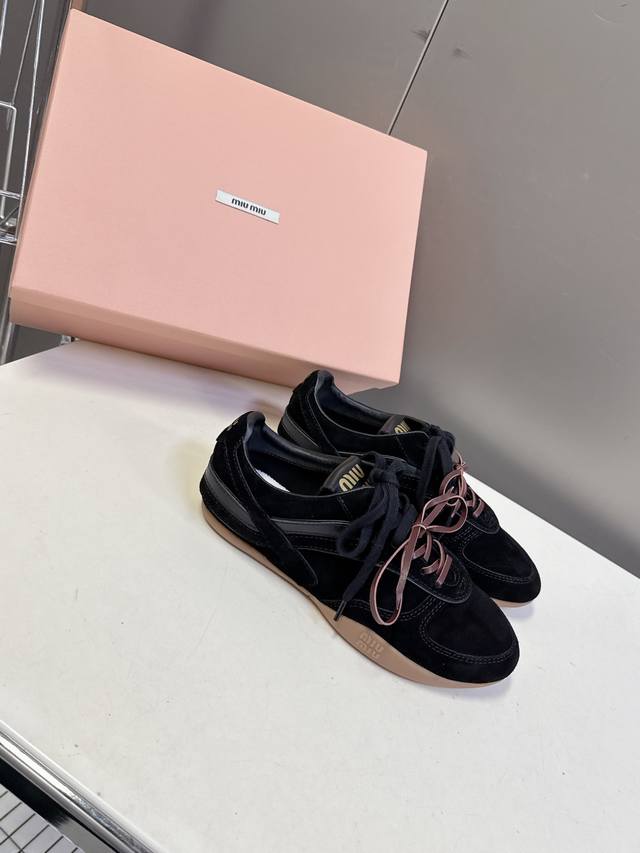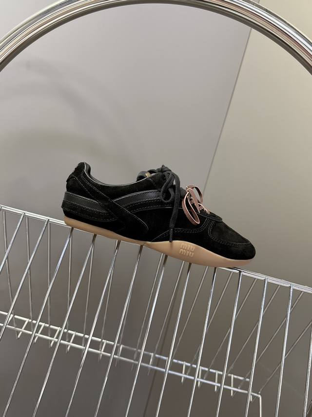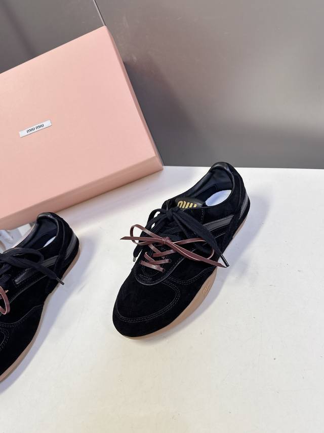 Miumiu缪缪最新走秀款复古休闲鞋 德训鞋 官方秀场出镜率最高的单品 超多明星时尚博主种草 Miu系穿搭还是一如既往的火 时髦百搭即可咸又可甜 无论光脚穿还是