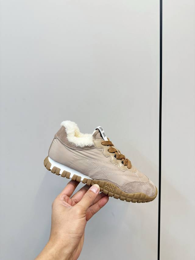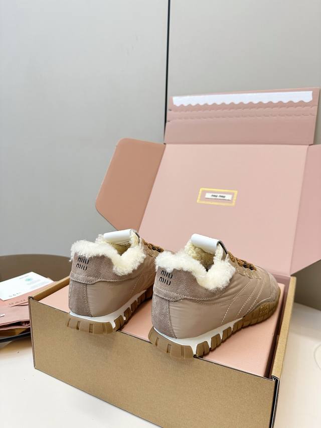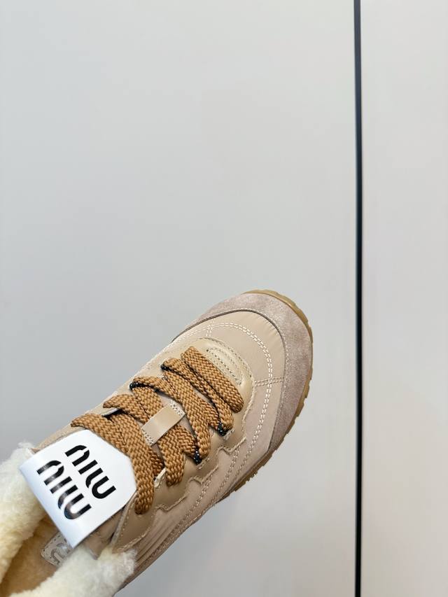 / Miumiu缪缪秋冬新品毛绒德训鞋 Miumiu 2025秋冬新款毛绒德训鞋,织物+绒面皮革拼接,内里柔软毛绒,穿着超舒适又保暖 橡胶轮胎底,耐磨抓地力强,日常