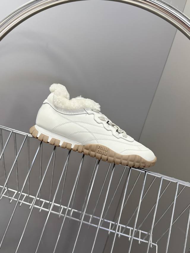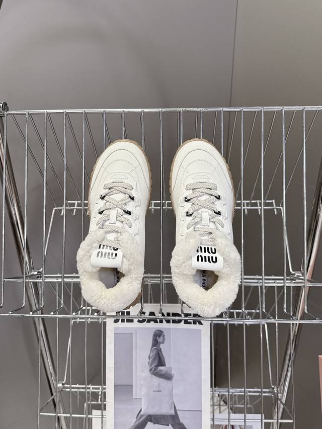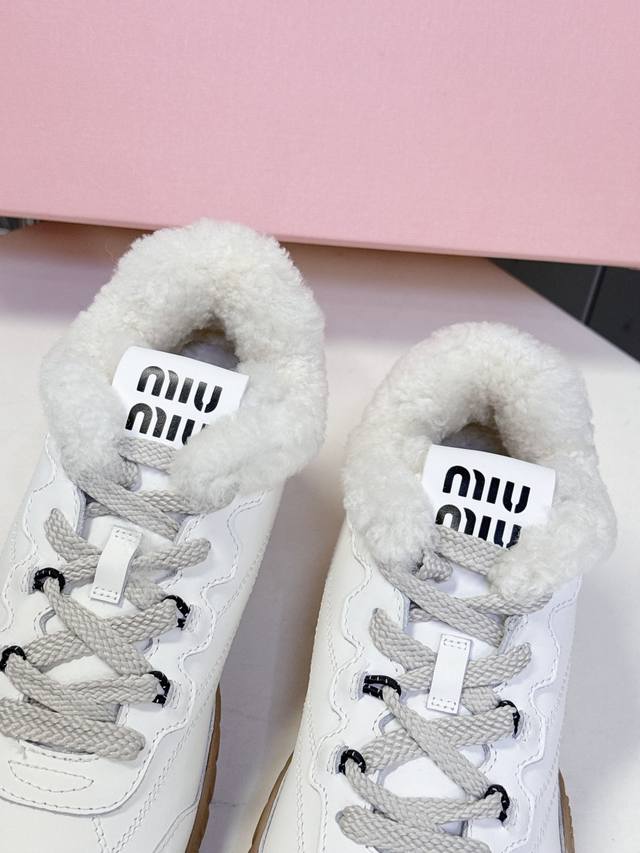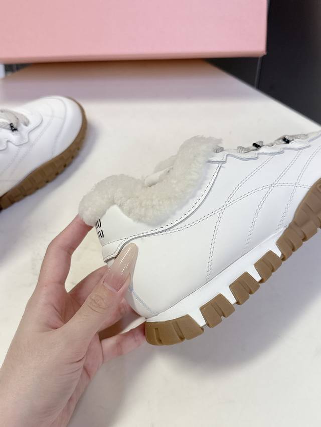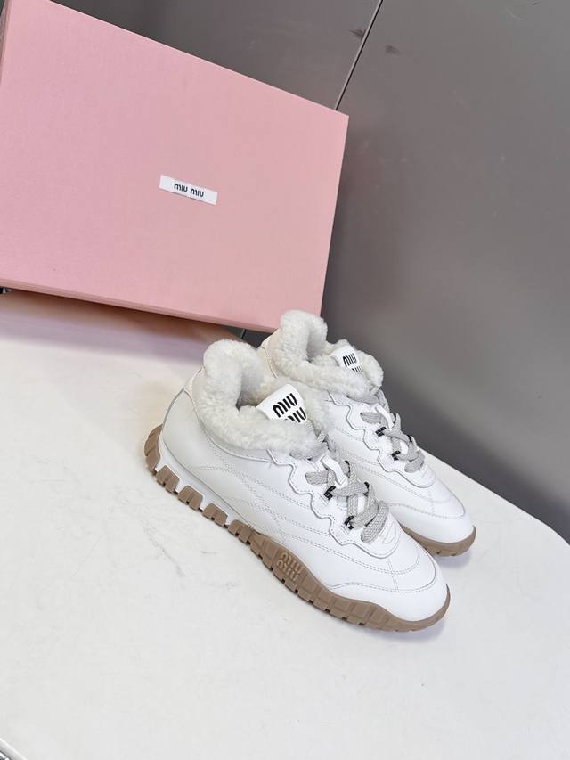 Miumiu缪缪秋冬最新款 毛毛鞋 饼干鞋 休闲鞋 DDD 超多明星网红种草 Miu家最新爆款 前卫大胆的设计,Miu Miu风格融于此款厚底帆布运动鞋的简约线条,别致徽标饰于鞋舌与背面,点缀复古设计,平添标志性元素!厚底设计定义前卫的现代风格面料:原版定制布料 牛反绒 内里:真羊毛 超级暖和 鞋底:原版开模防滑橡胶大底 Size:35-40 40定制不退换 DDD