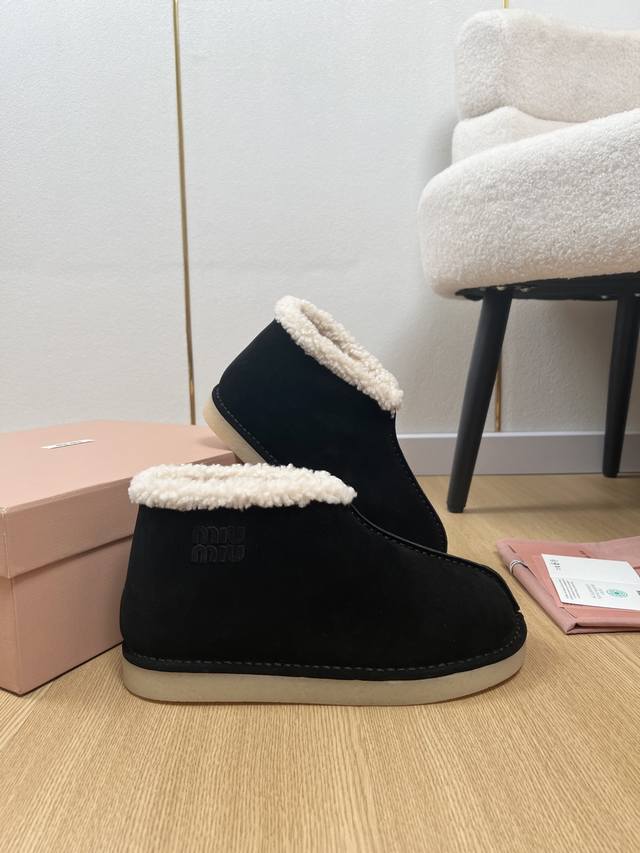 Miumiu缪缪 2025 Miu家2025秋冬新品 专柜最新爆款一脚蹬羊毛雪地靴短靴系列 今年最值得入手的毛毛靴子 没有之一!超多网红明星上脚Miu今年秋冬确实泰酷辣 复古做旧西部中靴一脚蹬中靴非常贴胶 非常软巨好穿!脚感超赞!靴筒宽大 不管腿粗腿细 都能穿出宽松感而且非舒服, 秋冬限定款 专柜非常难买 看着很硬的样子 其实非常软巨好穿!脚感超赞! 靴筒宽大 不管腿粗腿细 都能穿出宽松感而且非常显腿直!!朋克风十足! 今年主推款,百搭好看,舒适又优雅,时尚 简约高级 随意搭配 上脚非常舒适,年度必入款!