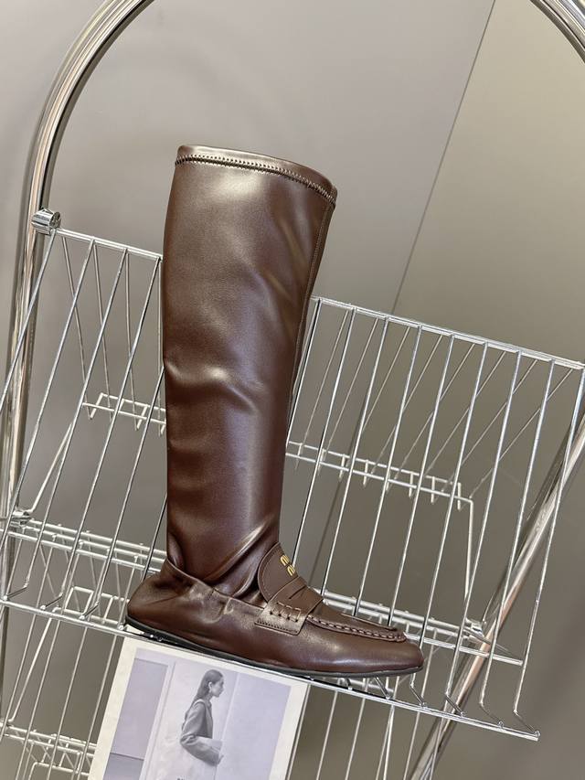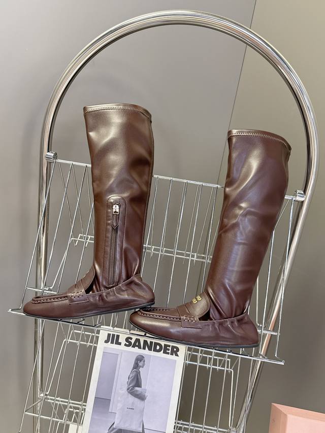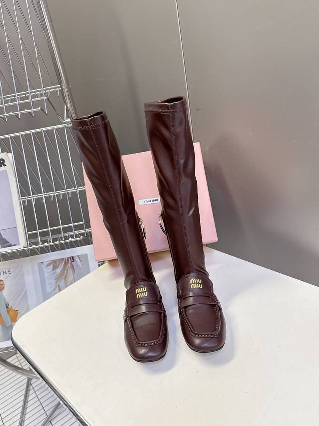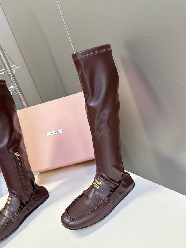 Miumiu缪缪2025秋冬最新走秀款弹力靴 秀款出镜率最高的单品 Miu家订货会一鞋难求 超多明星时尚博主种草 细节扣子原版一比一复刻 今年最值得入手的靴子 没有之一!今年秋冬确实泰酷辣 美拉德色系皮料 超级百搭好看 虽是长靴但是相当好入脚 面料其实非常软巨好穿!脚感超赞 不管腿粗腿细 都能穿出宽松感而且非常显腿直 朋克风高级感十足 鞋面弹力Pu 原版开模防滑大底Size:#35-40 40 定制不退换