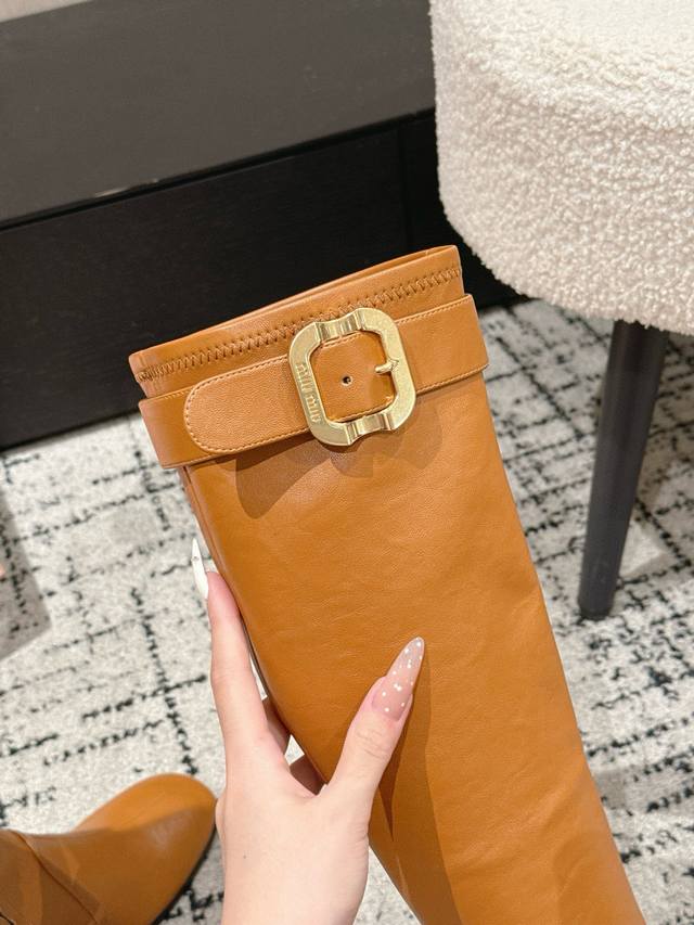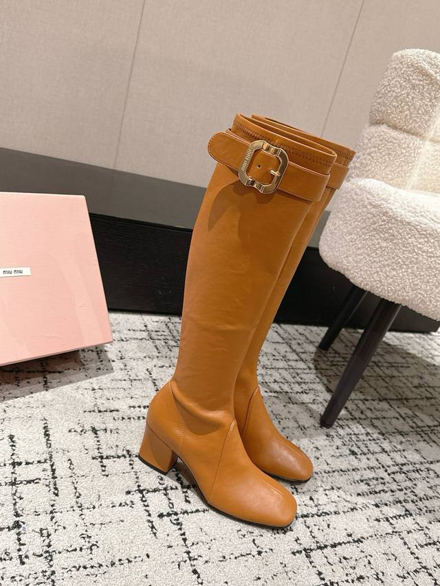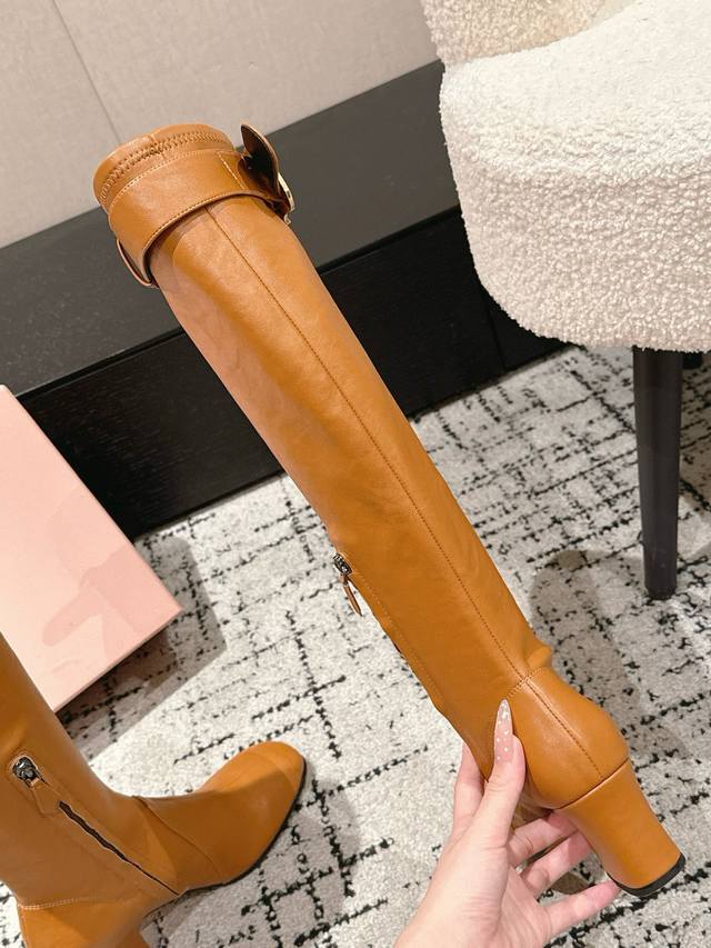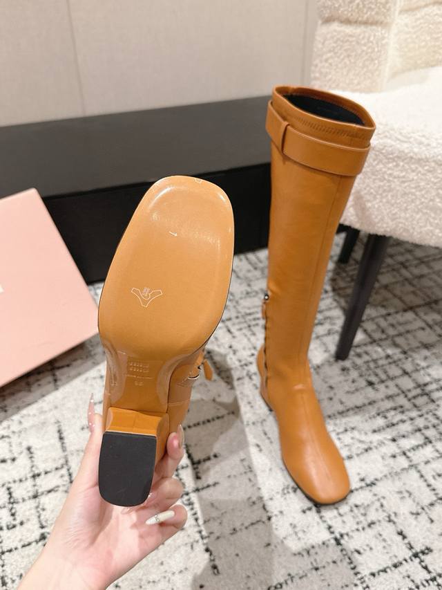 Miumiu 繆繆 25 秋冬新款弹力羊皮靴超软高跟 过膝靴 长靴 处处都是亮点小方圆头的设计在视觉上具有独特性,更能吸引眼球 展现穿着者的个性与时尚态度,能够
