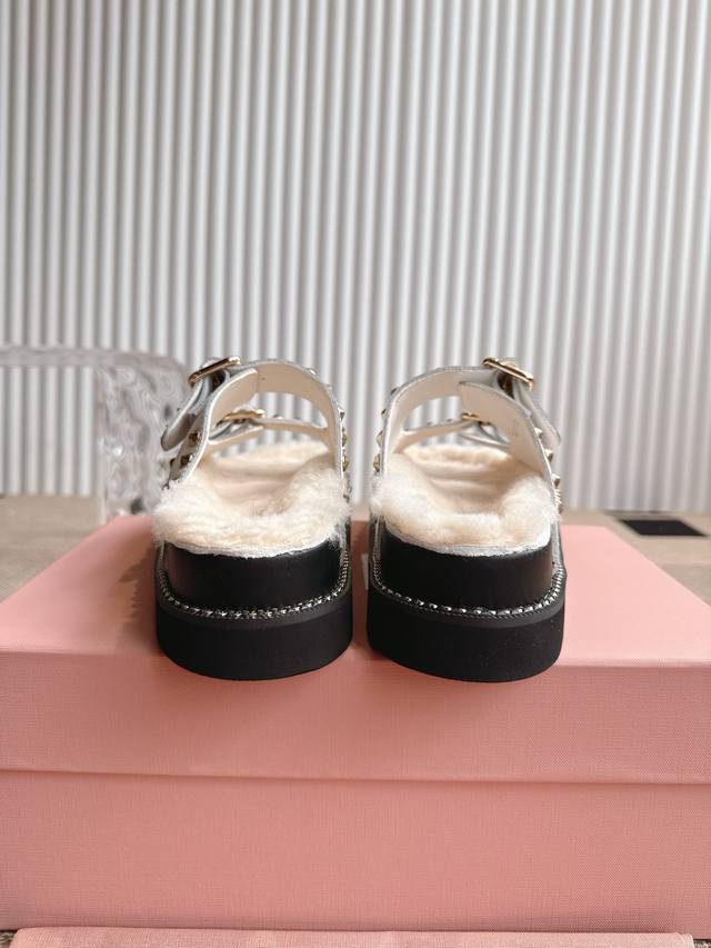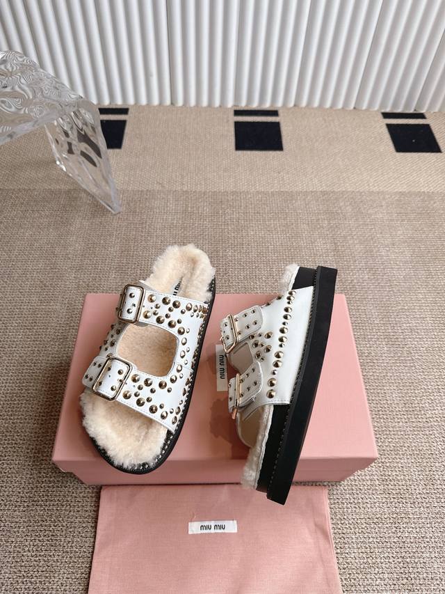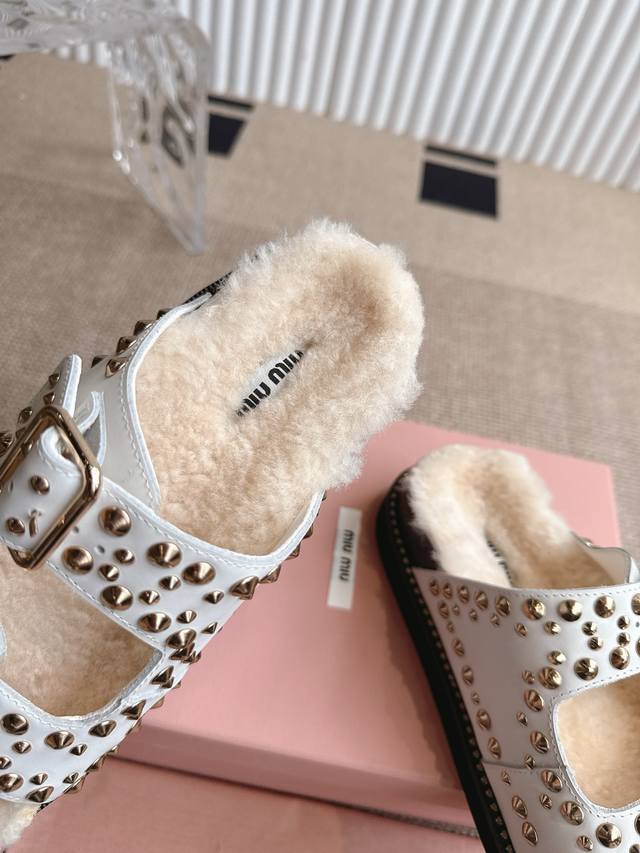 Miumiu 缪缪厚底铆钉毛拖