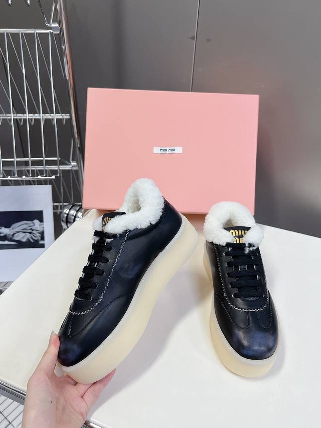 顶级品质 miu fw24 new arrival~ miu24秋冬羊毛运动鞋新品 小牛皮鞋面,皮毛一体内里 脚感满分 size 35-41