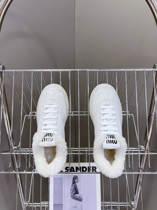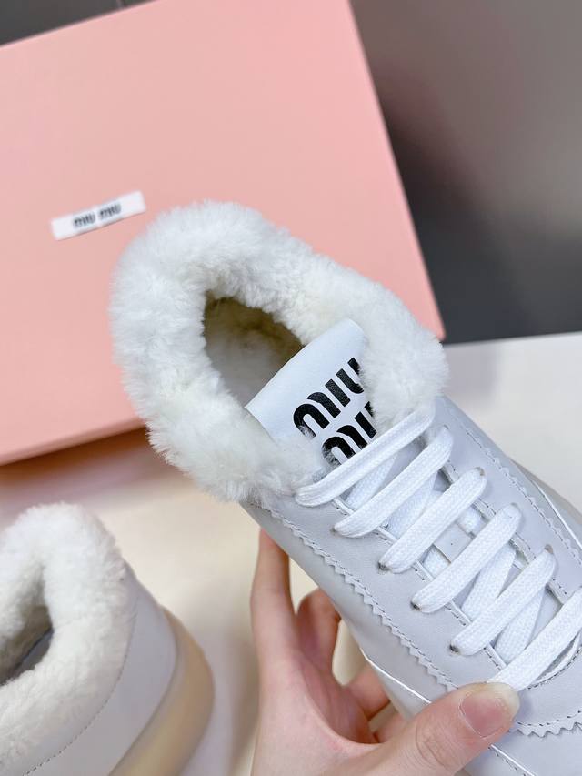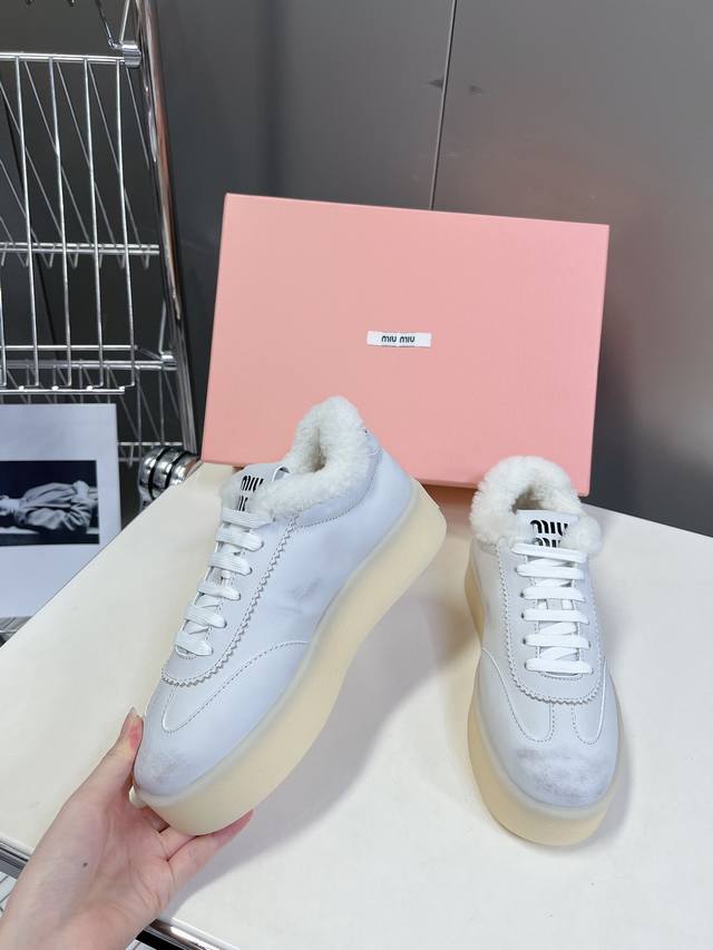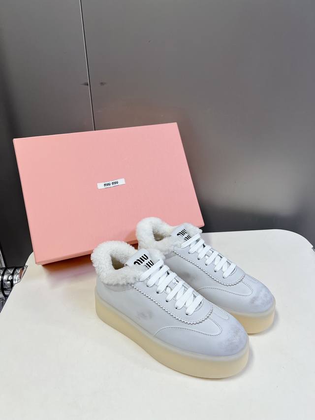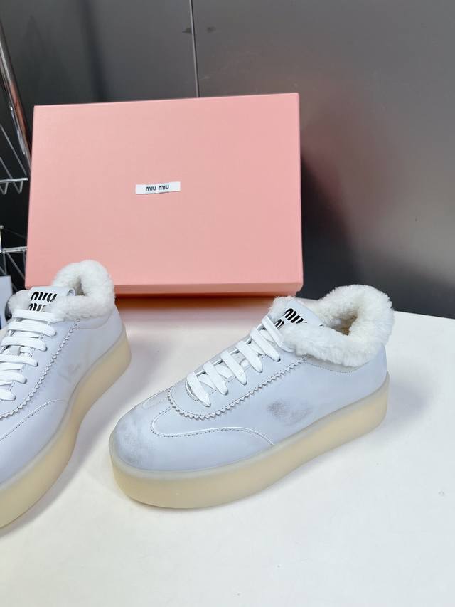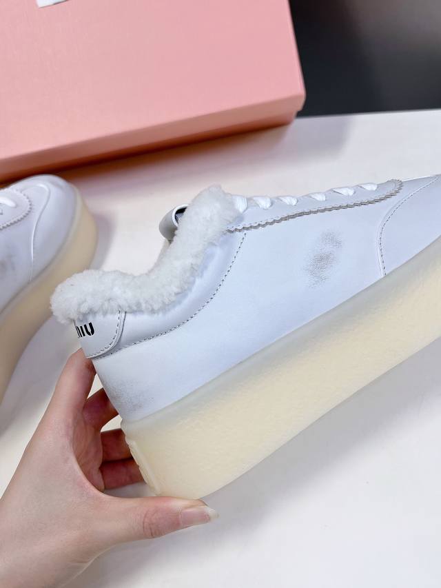 Miumiu 缪缪新款美式复古风~颜值担当火爆厚底毛毛小白鞋 不得不入的一款~做旧时尚,简约高级 随意搭配上脚非常舒适,年度必入款! 秋冬最新走秀款运动小白鞋国