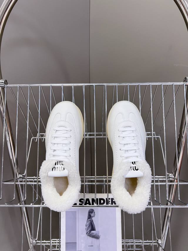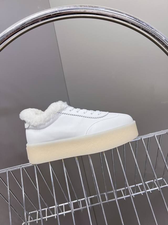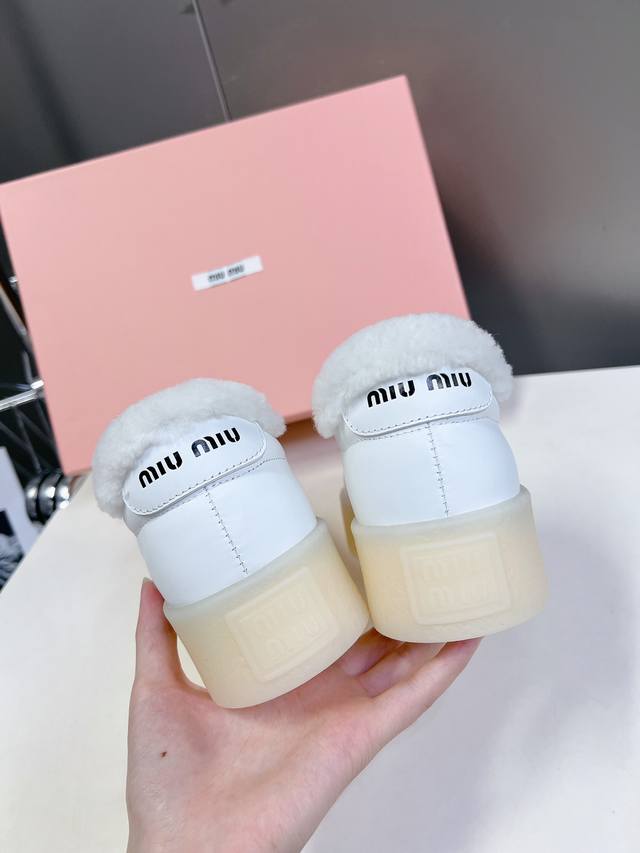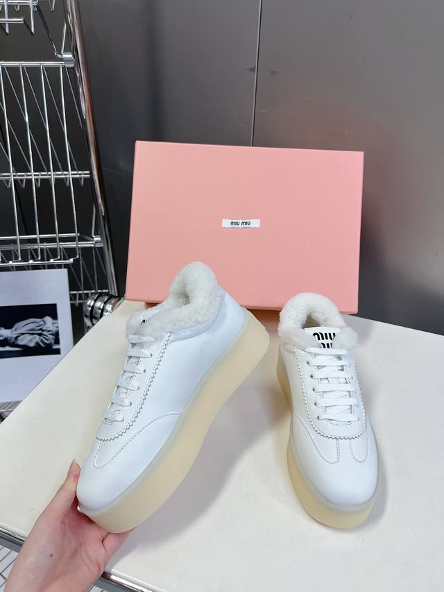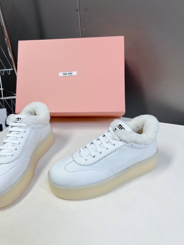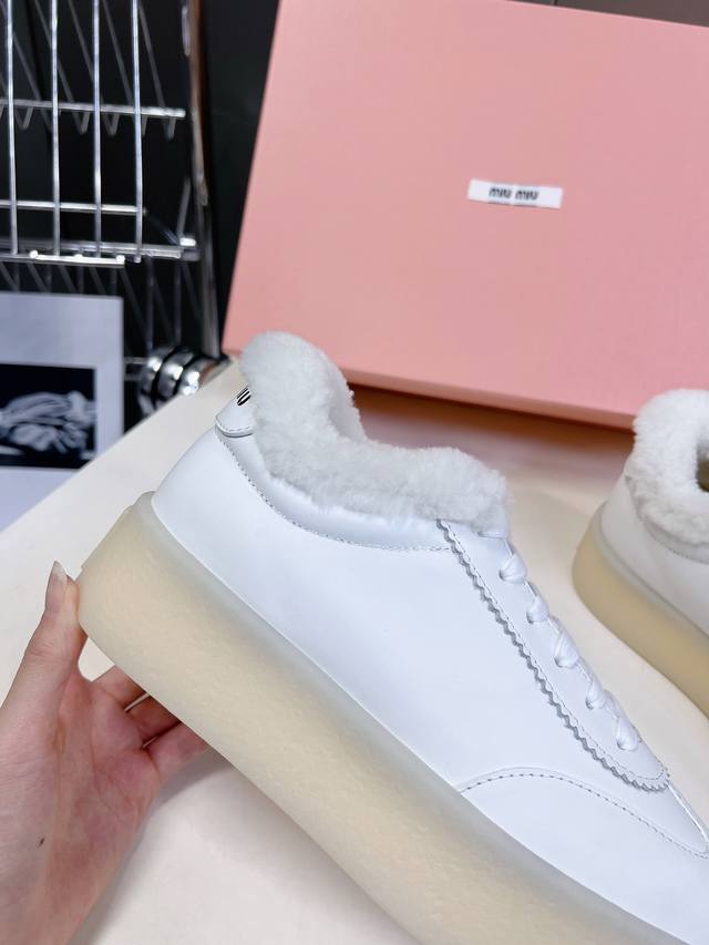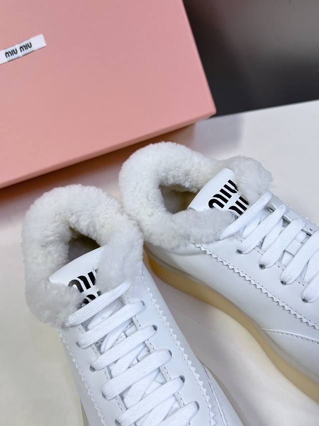 Miumiu 缪缪新款美式复古风~颜值担当火爆厚底毛毛小白鞋 不得不入的一款~做旧时尚,简约高级 随意搭配上脚非常舒适,年度必入款! 秋冬最新走秀款运动小白鞋国