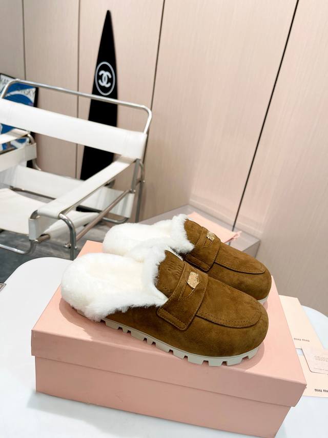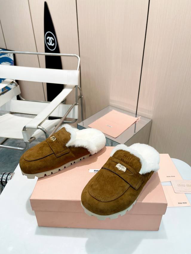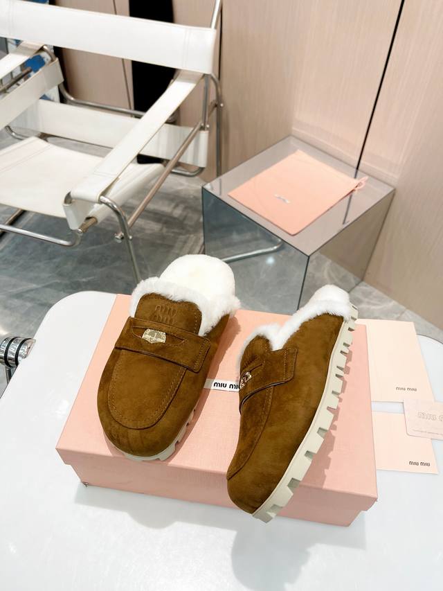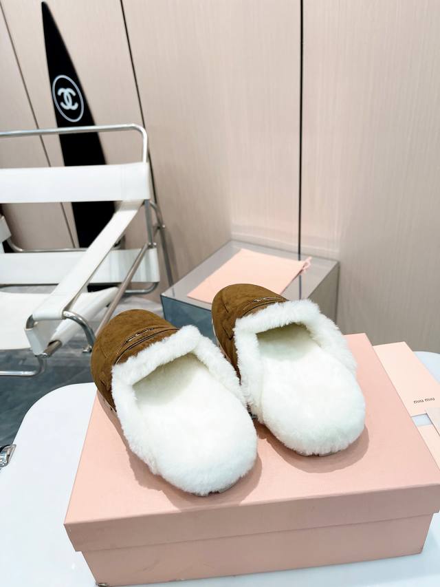 Miumiu ~缪缪秋冬最新款毛毛拖鞋~ DDD Miumiu今年也是出了不少!这双毛拖也好好看!皮质的就是非常高级呀!!搭配秋冬的牛仔短裤 简直就是完美呀!穿上立马拥有理想的身高有没有! DDD 大爱款,有时尚元素,鞋面外表 贵气感十足 穿上它总能展现女性时尚韵味 时尚却不过分张扬,鞋面高档羊猄加上 DDD Miuimiui字母扣实在太美 DDD 鞋面:进口高丝光羊猄 DDD 大底:橡胶大底 DDD 内里:进口真羊毛 DDD 码数:35-40 DDD