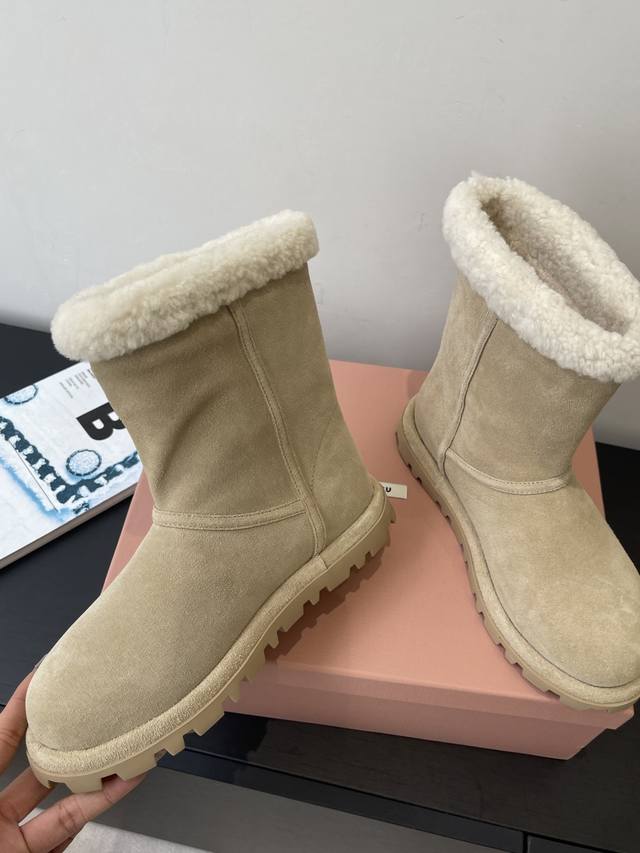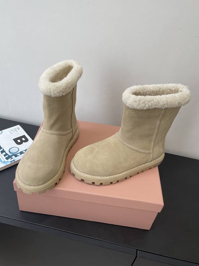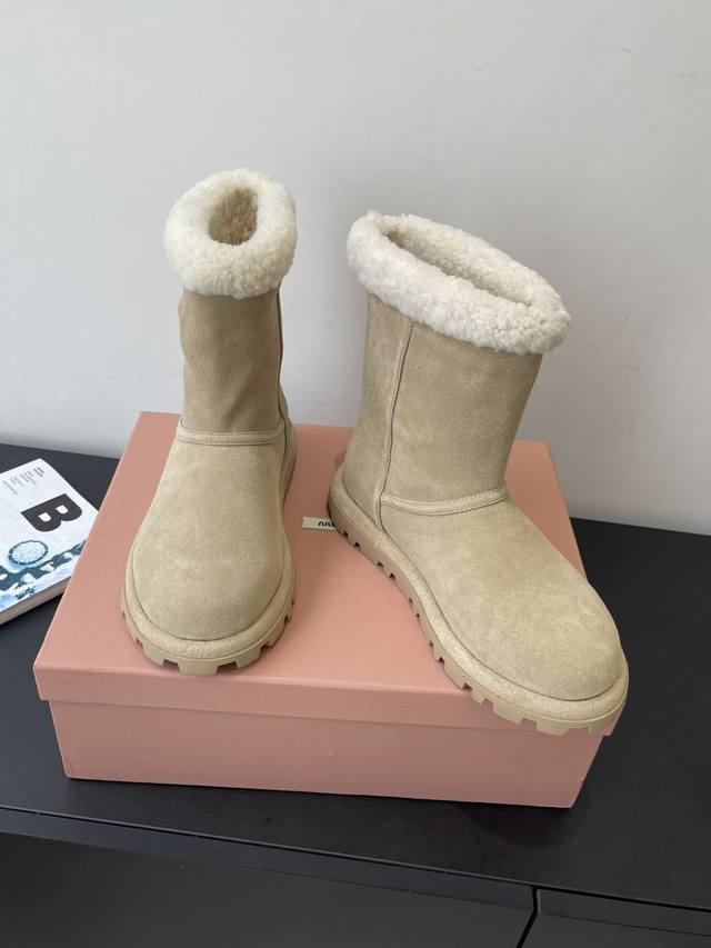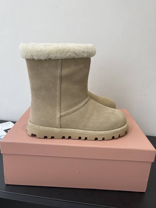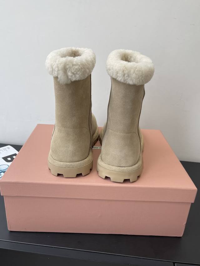 Miumiu 缪缪 秋冬最新走秀款 雪地靴毛毛鞋 DDD 超多明星网红种草 小红书博主都有钟爱 简约的设计更显优雅 上脚尤为惊艳到你的一款 看着超级暖和 闭眼入都是不会后悔 上脚非常舒服超级稳 搭配还是可咸可甜 鞋面进口高丝光牛反绒 内里进口羊毛内里 鞋底Zp开模大底。 码数:35-41 40 41 定做不退换 DDD