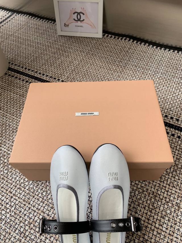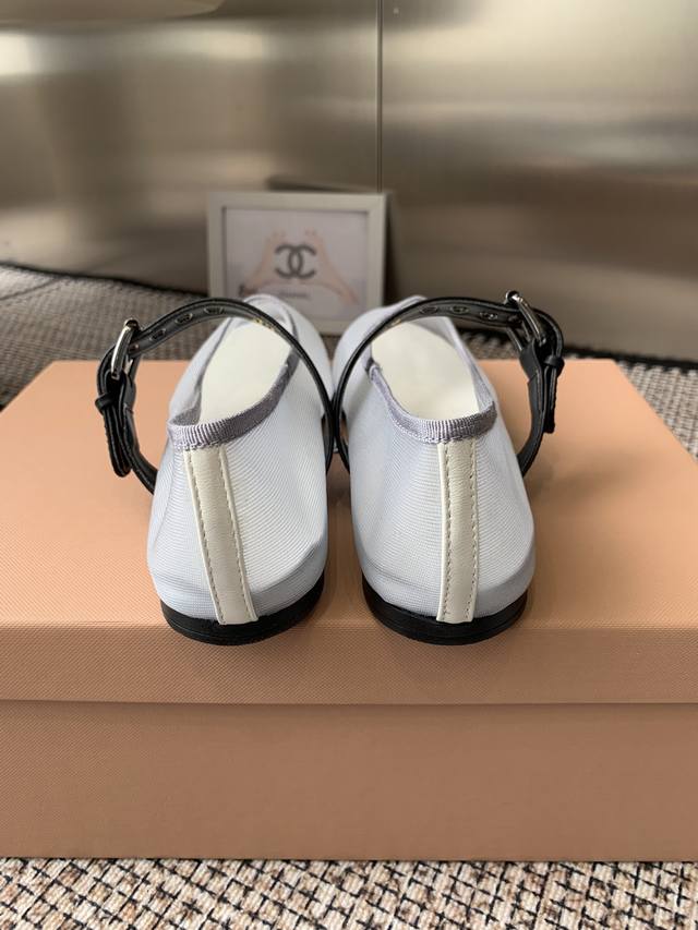 Miumiu 缪缪 25Ss新款 一脚蹬懒人鞋玛丽珍网面芭蕾舞鞋 平底单鞋 官方春夏走秀新款 时髦百搭即可咸又可甜 一点也不磨脚 无论光脚穿还是搭配袜子穿都超级