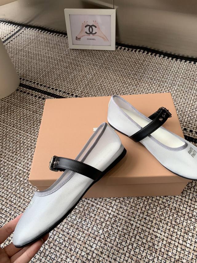 Miumiu 缪缪 25Ss新款 一脚蹬懒人鞋玛丽珍网面芭蕾舞鞋 平底单鞋 官方春夏走秀新款 时髦百搭即可咸又可甜 一点也不磨脚 无论光脚穿还是搭配袜子穿都超级减龄 超级无敌百搭 鞋面定制进口网面+头层牛皮 垫脚羊皮 鞋底原版大底 码数:35-39 40订做不退换