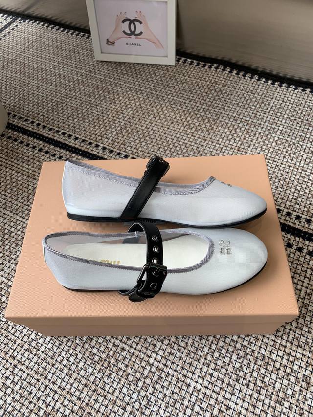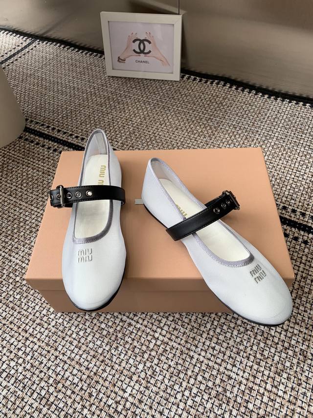 / Miumiu 缪缪 25Ss新款 一脚蹬懒人鞋玛丽珍网面芭蕾舞鞋 平底单鞋 官方春夏走秀新款 时髦百搭即可咸又可甜 一点也不磨脚 无论光脚穿还是搭配袜子穿都超级
