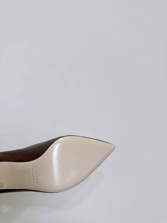 Miumiu 缪缪 25Ss春夏新款 复古 尖头高跟 单鞋 春夏清新配色 曲线优美 日常穿搭都很搭 后跟有专属标识性Logo格调 上脚尽显优雅魅力 鞋面 采用原
