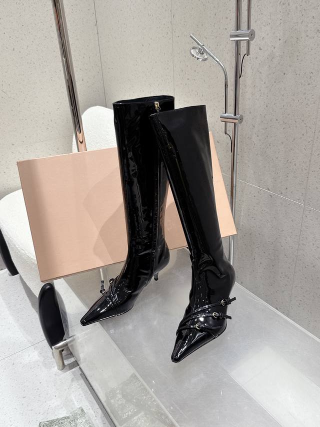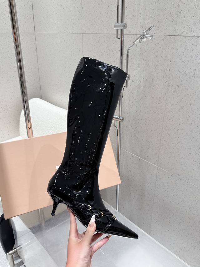 / Miumiu 缪缪 25Ss秋冬新款细跟小方头侧拉链高跟长靴鞋面:采用原版混种羊皮牛漆皮内里:羊皮 鞋底:意大利进口真皮大底跟高:4.5Cm 10Cm码数:35
