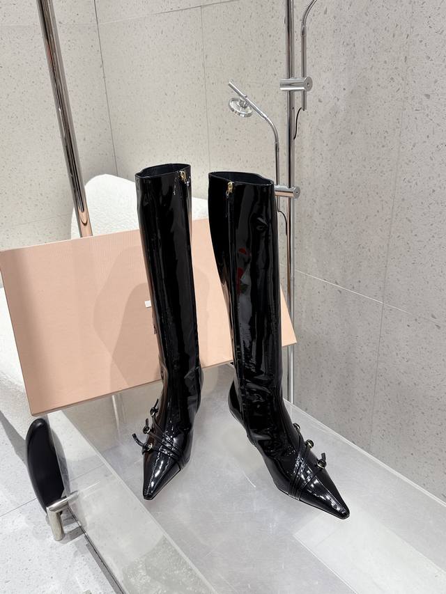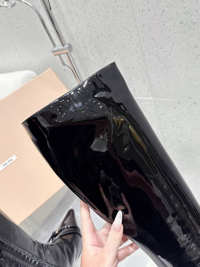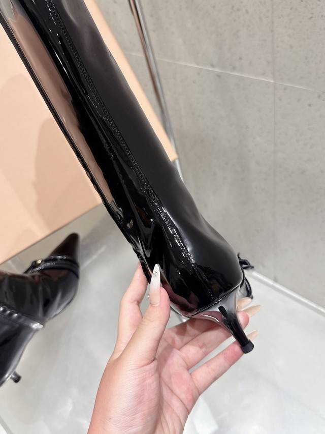 Miumiu 缪缪 25Ss秋冬新款细跟小方头侧拉链高跟长靴鞋面:采用原版混种羊皮牛漆皮内里:羊皮 鞋底:意大利进口真皮大底跟高:4.5Cm 10Cm码数:35-40 40 定做不退换