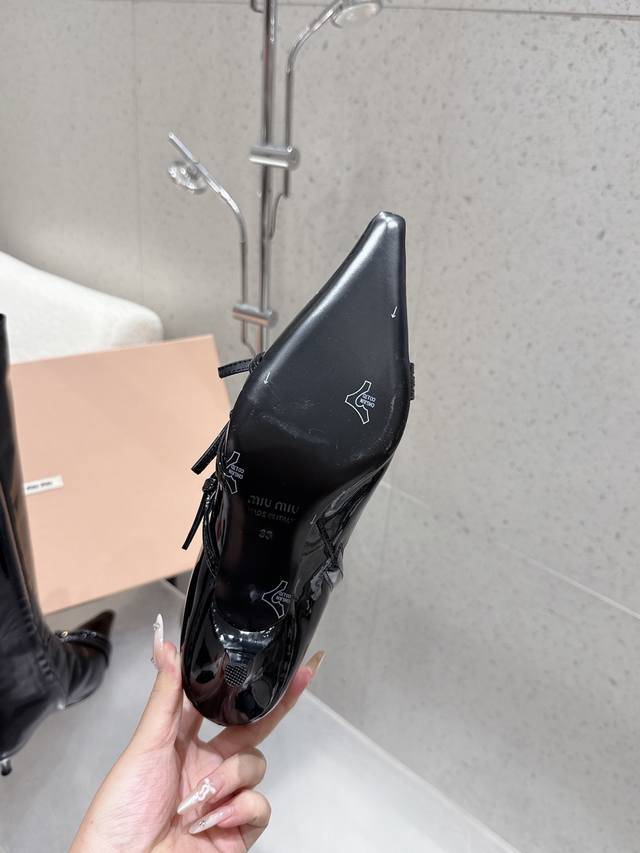 Miumiu 缪缪 25Ss秋冬新款细跟小方头侧拉链高跟长靴鞋面:采用原版混种羊皮牛漆皮内里:羊皮 鞋底:意大利进口真皮大底跟高:4.5Cm 10Cm码数:35