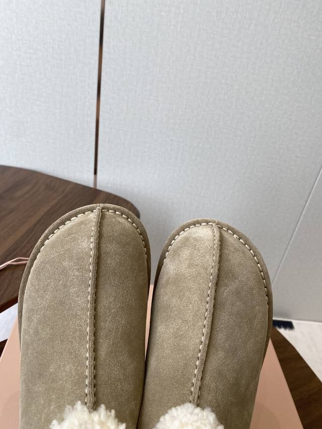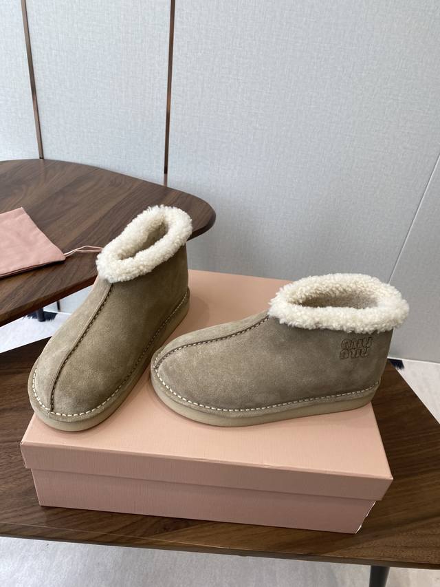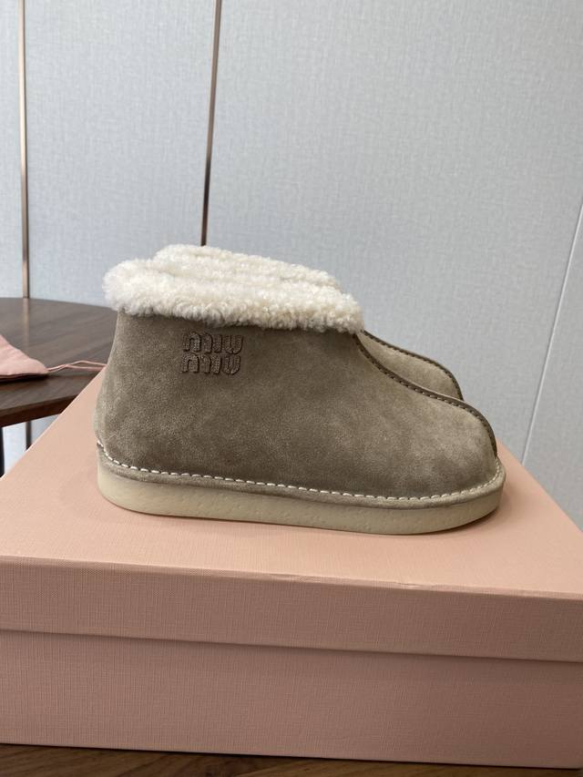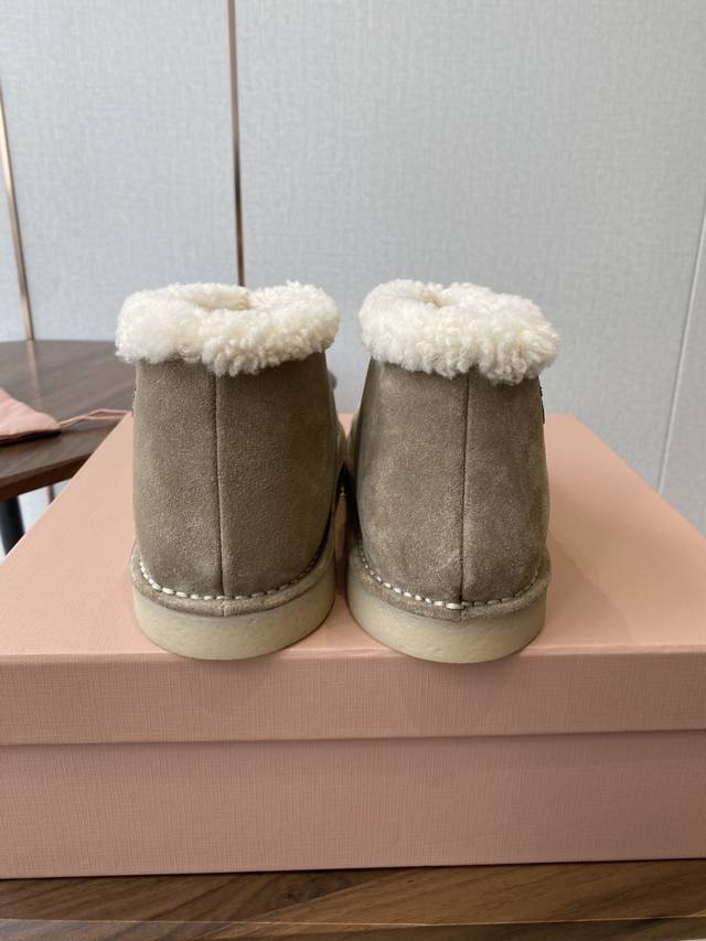 Miumiu 缪缪 25Ss秋冬走秀款 羊毛小短靴雪地靴毛毛鞋 经常出现在各大时装杂志封面 各路明星、小红书博主都有钟爱 搭配绑带设计更显优雅,上脚尤为惊艳到你