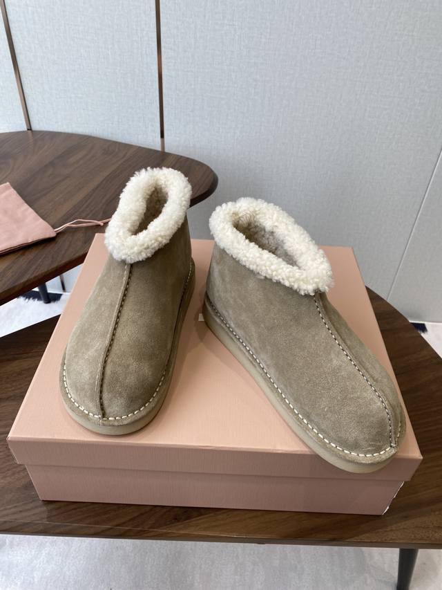 / Miumiu 缪缪 25Ss秋冬走秀款 羊毛小短靴雪地靴毛毛鞋 经常出现在各大时装杂志封面 各路明星、小红书博主都有钟爱 搭配绑带设计更显优雅,上脚尤为惊艳到你