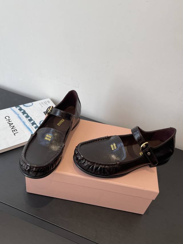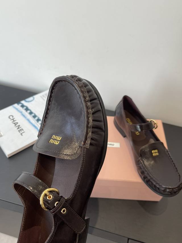 Miumiu 缪缪 26Ss春夏 复古玛丽珍鞋 DDD 当少女感碰撞复古肌理 这双鞋就是秋冬日衣橱的氛围开关 甜酷女孩的日常百搭牌 鞋头烫金“Miu Miu”标识一字扣带 复古玛丽珍的经典轮廓里 藏着品牌独有的娇俏少女感 鞋边手工褶皱缝线 把松弛感揉进每一步 DDD 鞋面进口羊皮 内里羊皮 大底橡胶大底 DDD 码数:35-40 40定做不退换 DDD