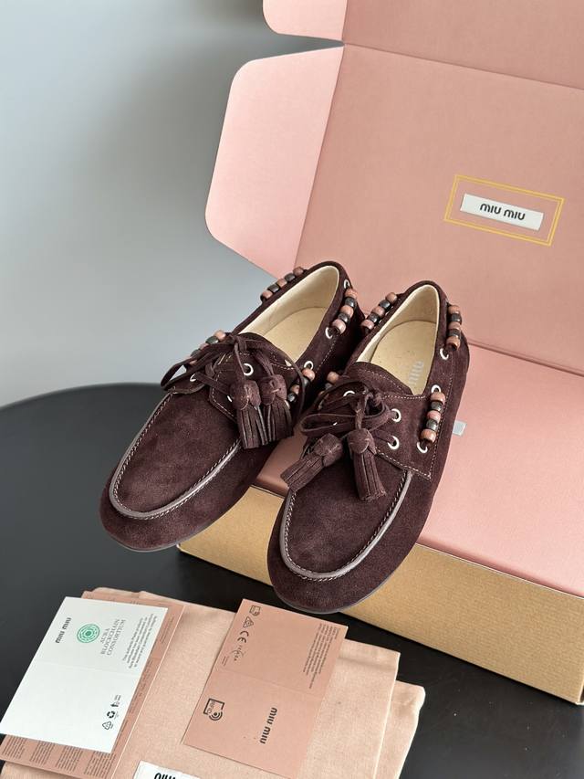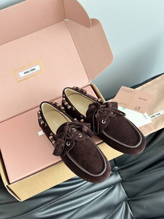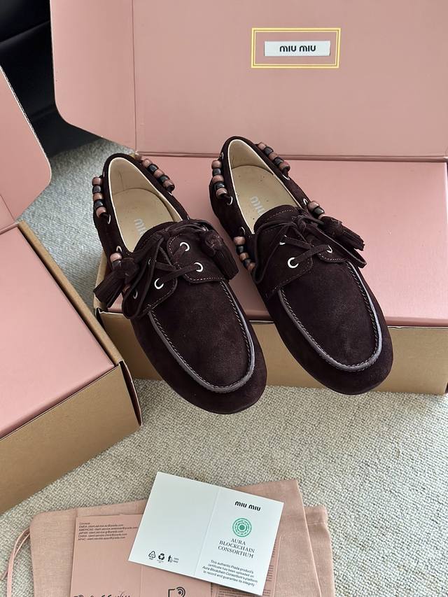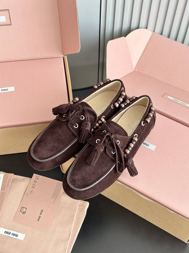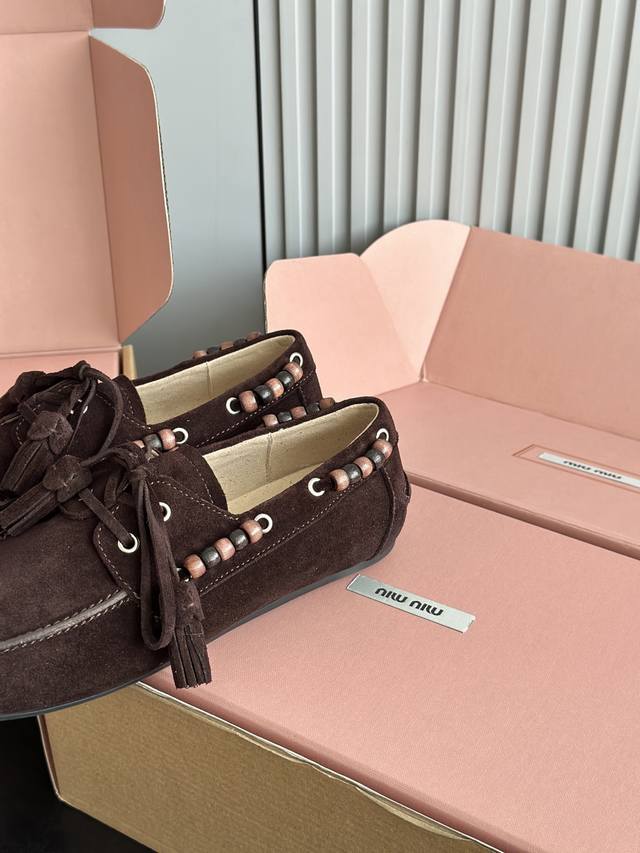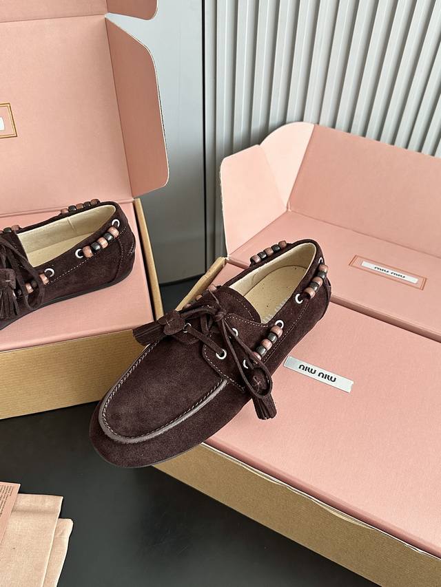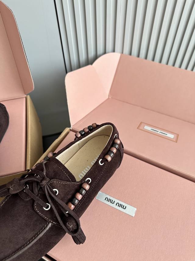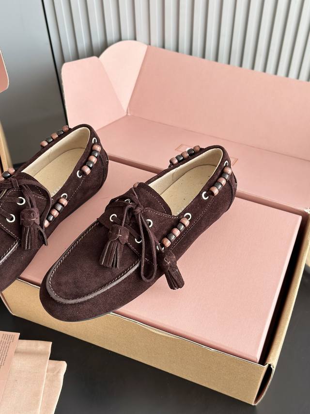 Miumiu 缪缪2025Ss秋冬 乐福豆豆鞋 走秀新款 DDD 开车小姐姐的福音复古时尚 简约高级 随意搭配 上脚非常舒适 鞋面采用和压花徽标Logo彰显别具一格的经典格调, DDD 面料:原版牛反绒 内里:羊皮 大底:原版开模橡胶大底 DDD 码数:35 40 40定做不退不换 DDD