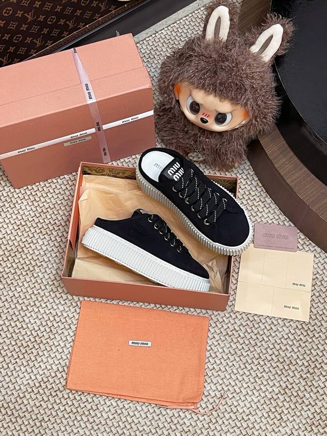 Miumiu 饼干厚底鞋 半拖整双鞋子采购Zp开发打造,全部定制材料,独家开模大底,细节全部对版出货,连包装也做到跟正品一样。码数:35-40 40订做不退换