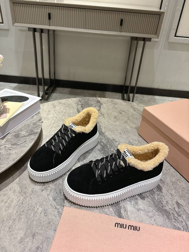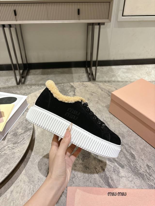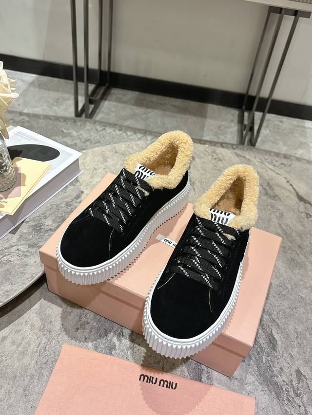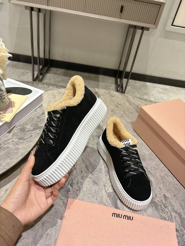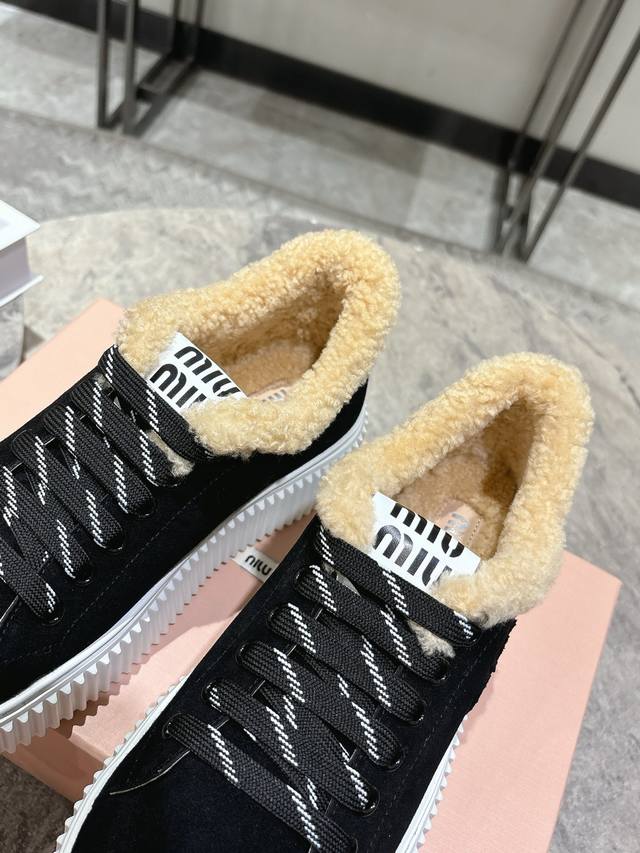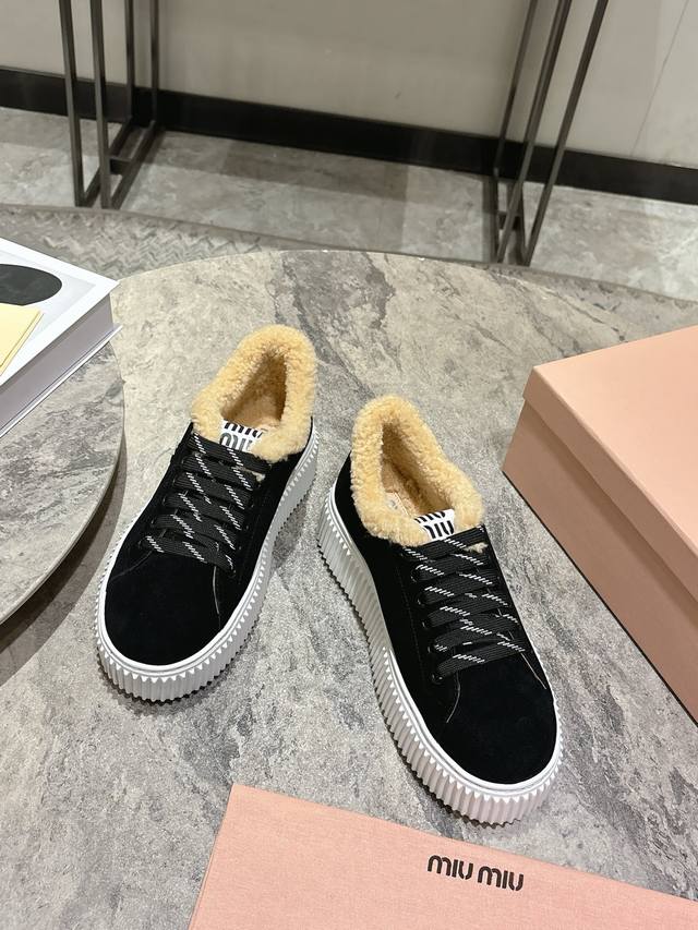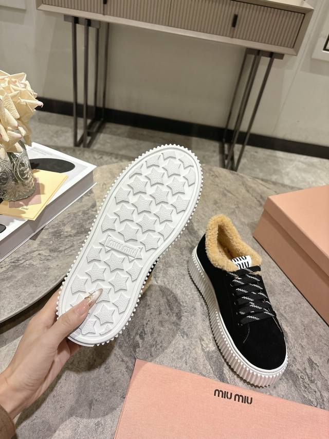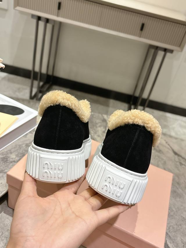Miumiu 2025秋冬新款 羊毛厚底饼干鞋 冬季经典升级加羊毛 增高4厘米的同时,既有饼干鞋的秀气轻盈,又有毛毛质感的可爱和保暖性可谓是时尚与实用并存了~