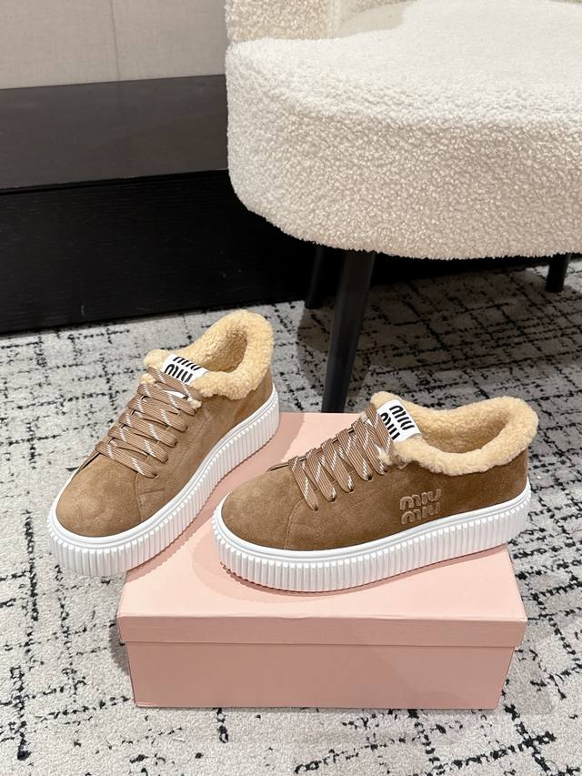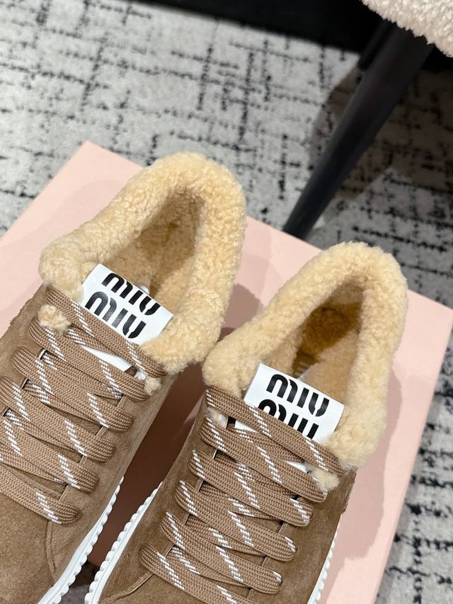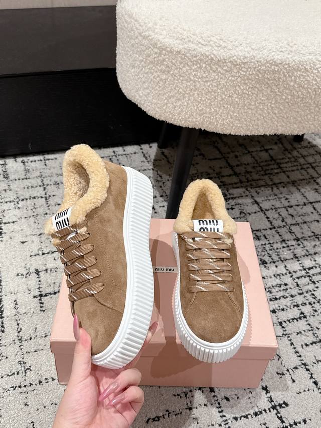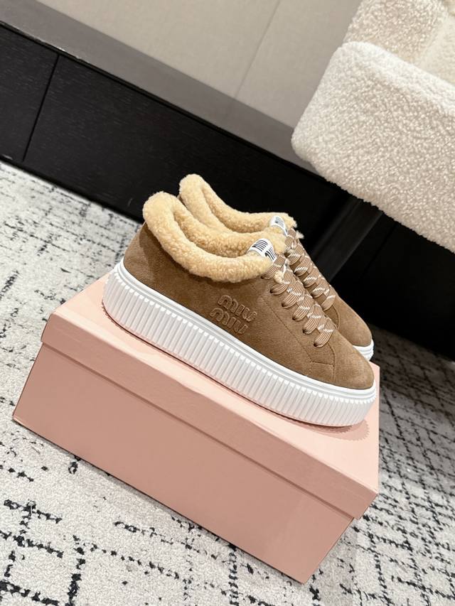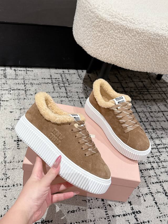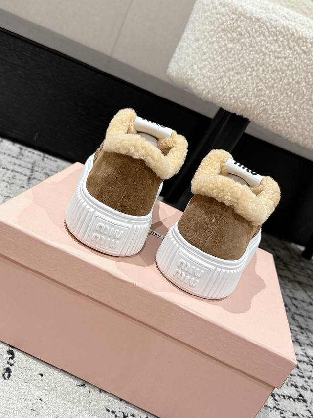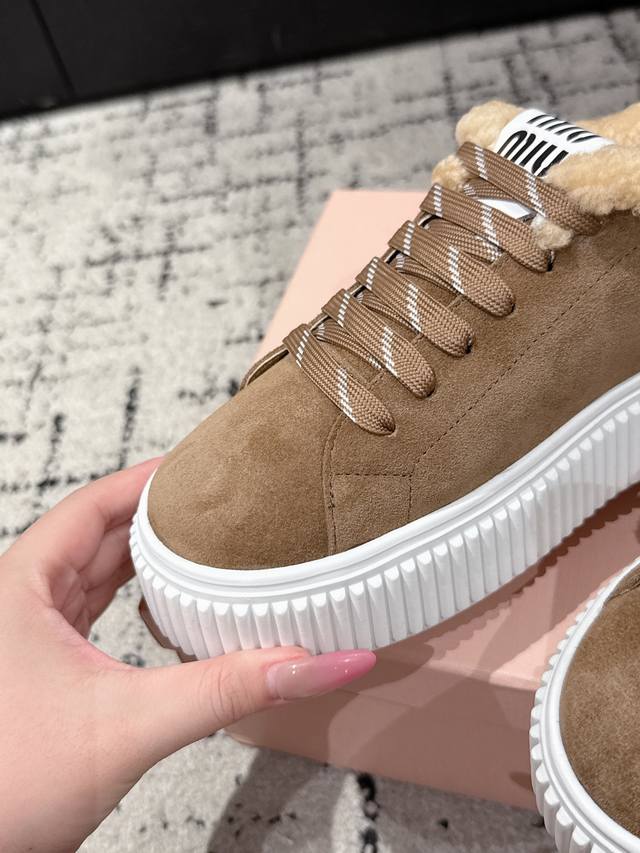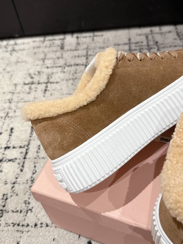 Miumiu 25 秋冬新款 羊毛厚底饼干鞋 冬季经典升级加羊毛 增高4厘米的同时,既有饼干鞋的秀气轻盈,又有毛毛质感的可爱和保暖性可谓是时尚与实用并存了~ 面