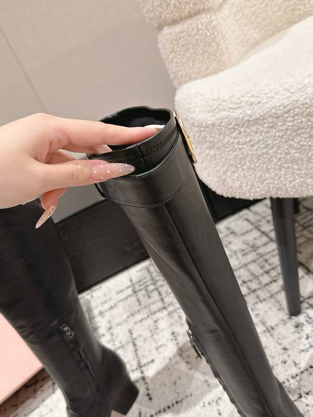 Miumiu 25 謬謬秋冬新款弹力羊皮靴超软高跟过膝靴长靴 处处都是亮点小方圆头的设计在视觉上具有独特性,更能吸引眼球 展现穿着者的个性与时尚态度,能够在视觉