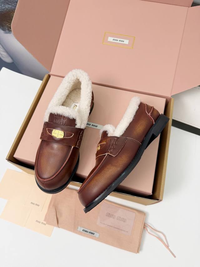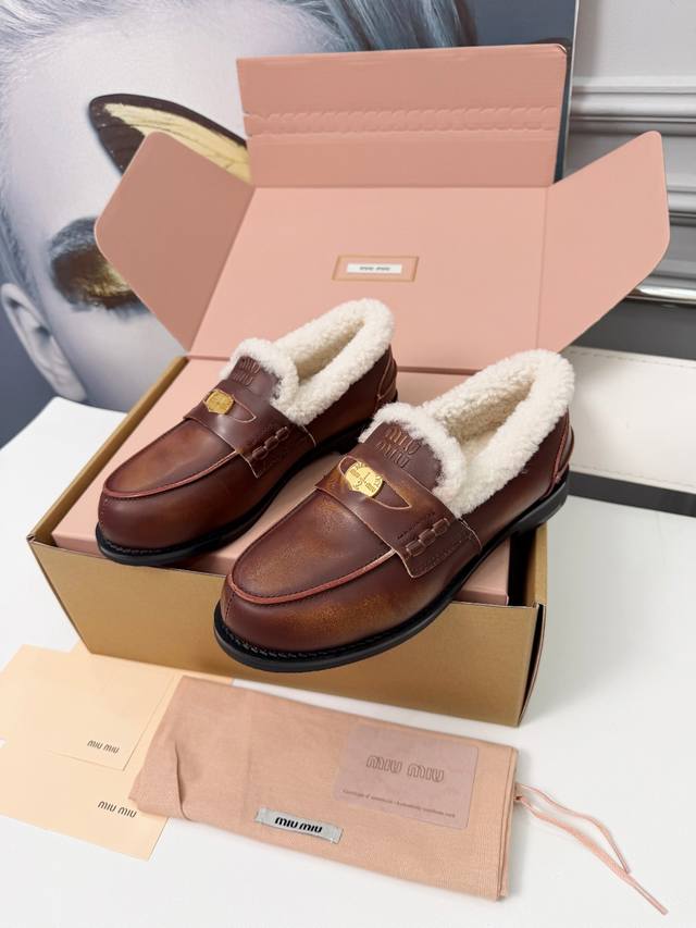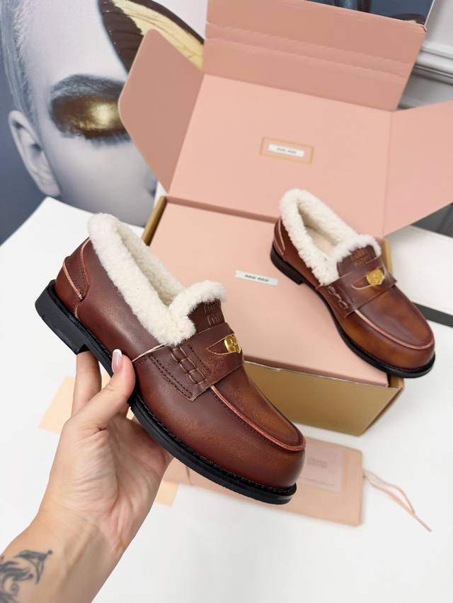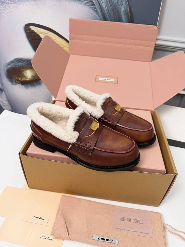 Miumiu 25Fw 金币乐福鞋 DDD Miumiu 25Fw新款复古风金币乐福鞋 毛里款 DDD 乐福鞋各大品牌都在争相出品,而且对双脚又更多的包容性,而且相当百搭,看到它的第一眼,质感妥妥地吸引了眼球,复古百搭! DDD Miumiu家依然自带名媛风,秀气精致的设计,在南方,四季有它就妥妥的,可以搭配长袜,保暖又时尚,搭配个性袜子,独具个性魅力! DDD 穿出自己Style才是最美诠释,时髦精必败的高奢女神鞋Yyds!鞋型线条感太棒了,经典休闲显女人味!加上金属配件点缀精致时髦感!质感别提多高级了