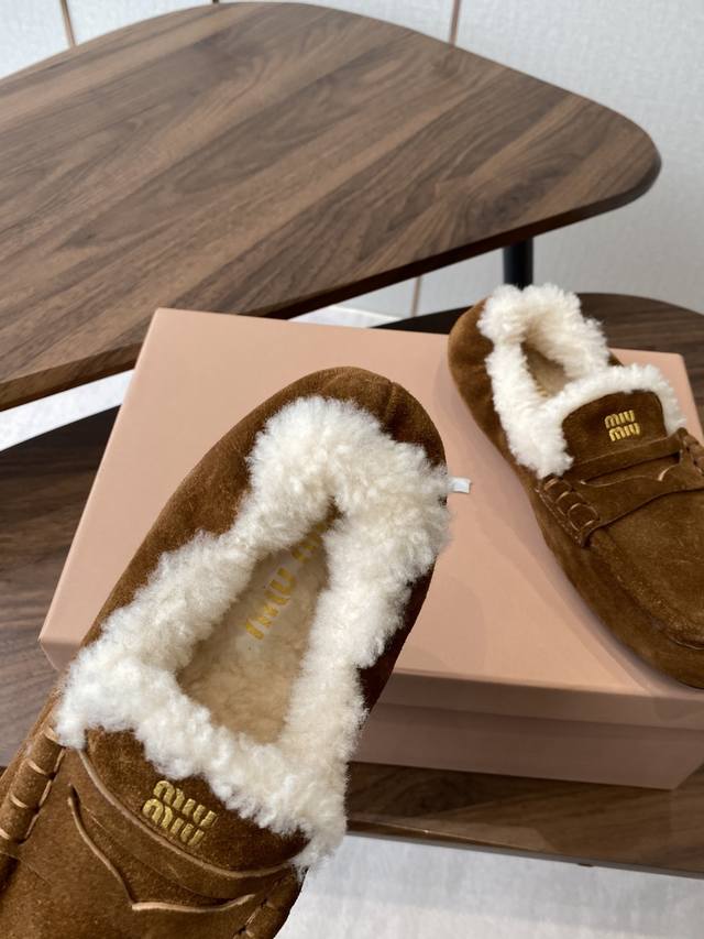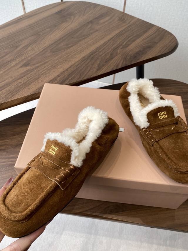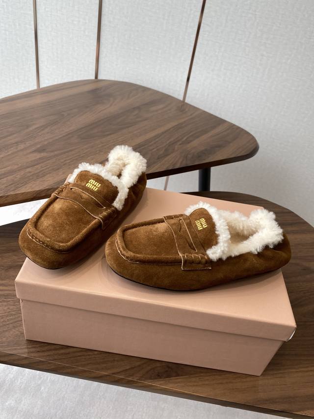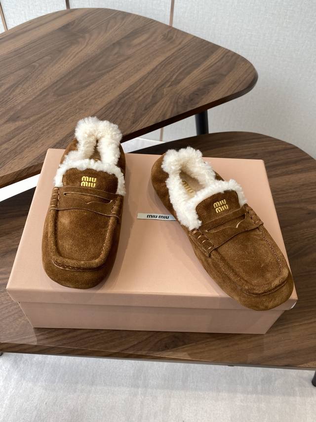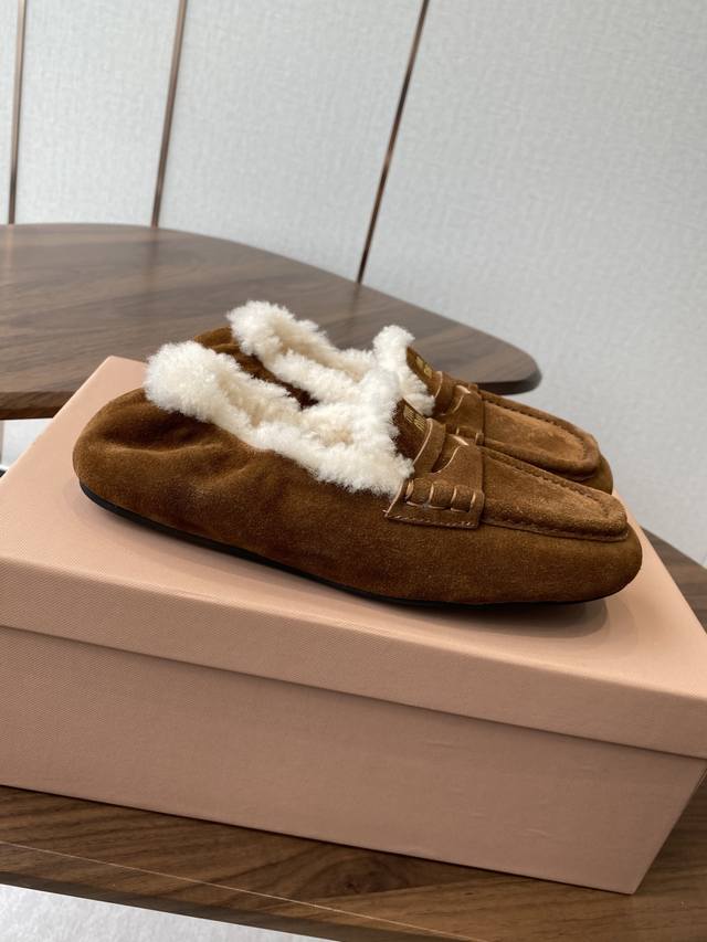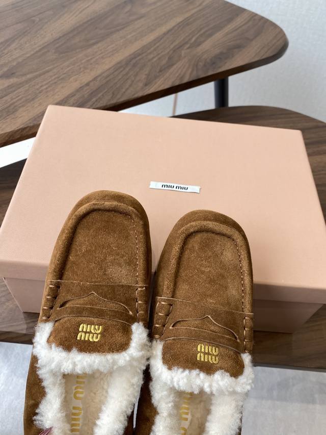 Miumiu 25Ss 秋冬走秀款 羊毛 方头乐福鞋