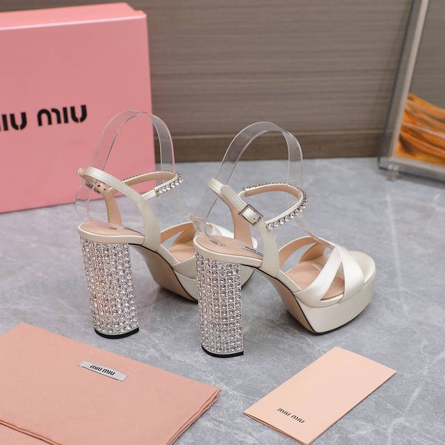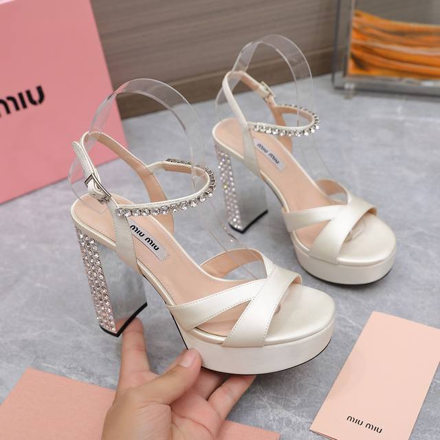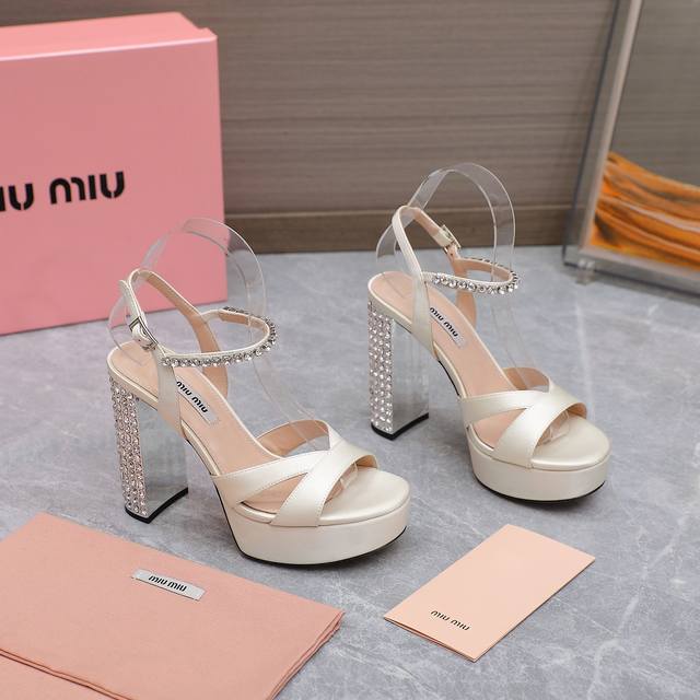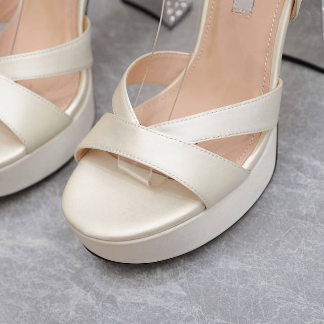 Miumiu Ss最新款 国外供原板开模 跟高12.5Cm 水台2.5Cm 原板调楦 脚感线条都非常完美 面料:进口高级丝绸 内里 垫脚:羊皮 颜色六个颜色 大