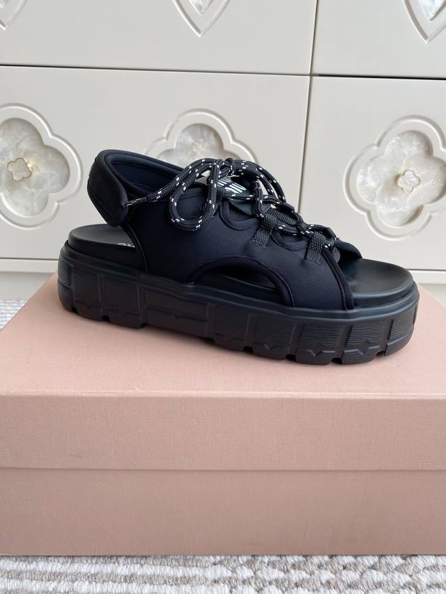 / miumiu25新款厚底绑带凉鞋 小个子女生的福音 上脚舒适 增高拉长腿部比例. 进口莱卡面料 牛皮包中底. 原版模具Tpu大底. 增高5.5Cm size 3