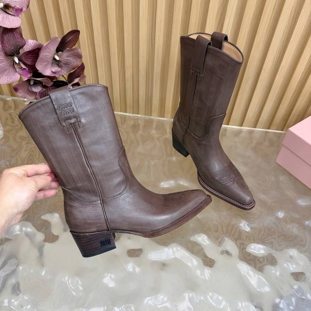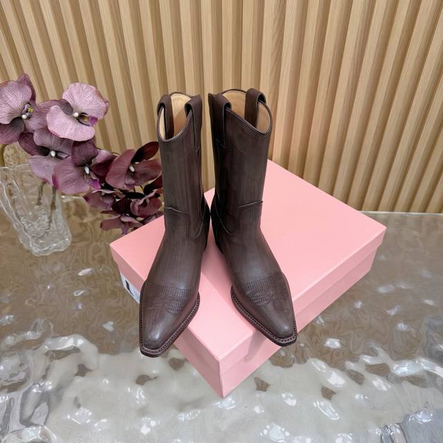 Miumiufw25 New Arrival~ 缪缪 25Ss 秋冬尖头马丁靴 骑士靴 新款中筒靴 时尚跟靴 DDD 绒面 皮面 DDD 简约鞋面点缀 高级感满满 上脚超级有型包脚显腿长,时尚好看,时尚百搭! DDD Miu Miu今年开挂啦 秋冬季搭配必入的决绝子~ DDD 材质:擦色牛皮 牛反绒 DDD 牛皮内里 垫脚 DDD 大底:真皮大底 DDD Size: #35-39 40 41 定做不退换 DDD