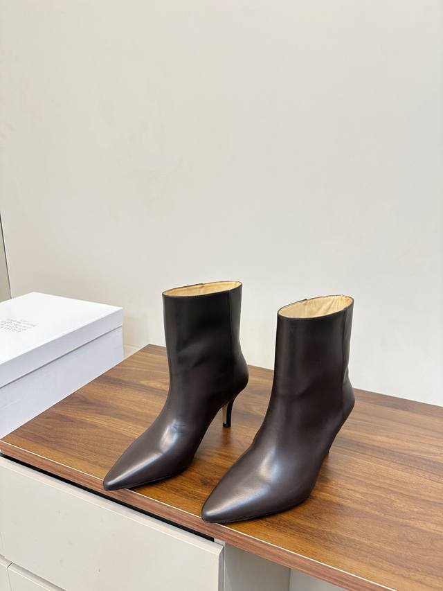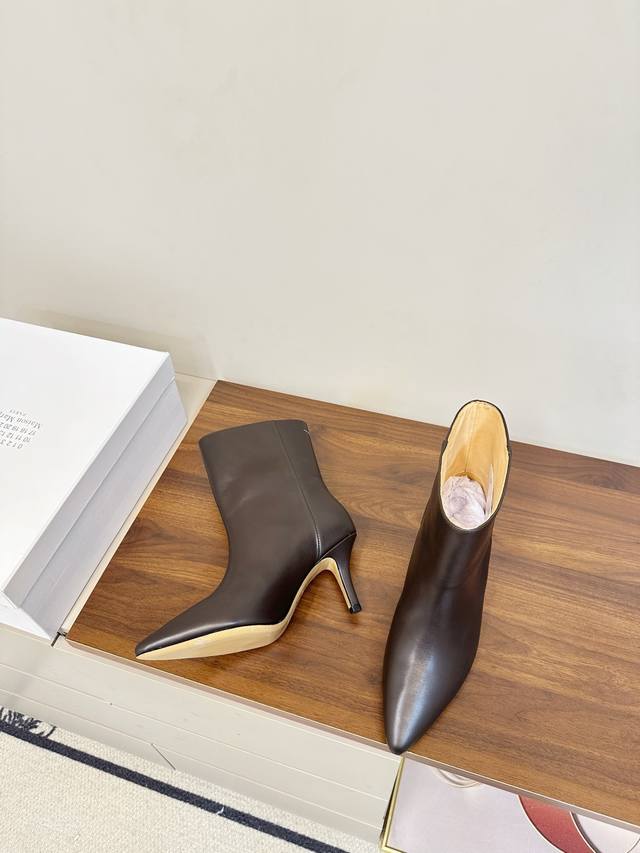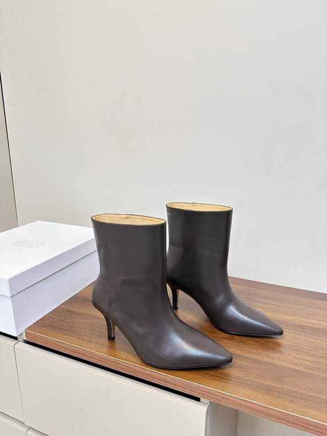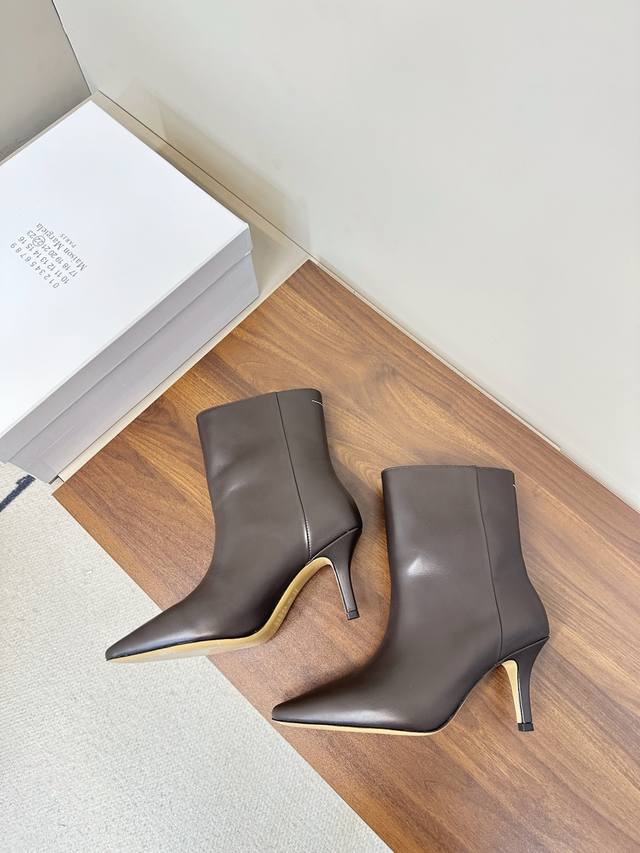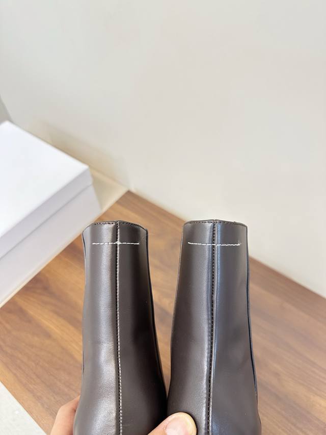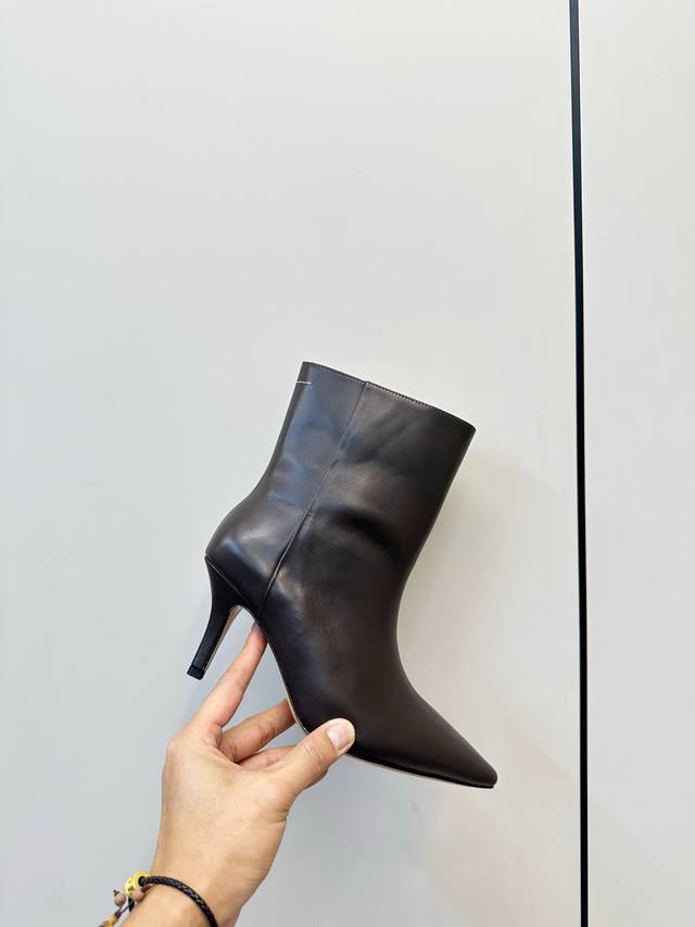 Mm6 马吉拉 尖头性感高跟 短靴 这款黑色尖头真皮短靴,采用优质真皮,鞋面光滑细腻,质感满分艹。 尖头设计+细高跟,约7Cm,拉长腿部线条,通勤约会都很适合。